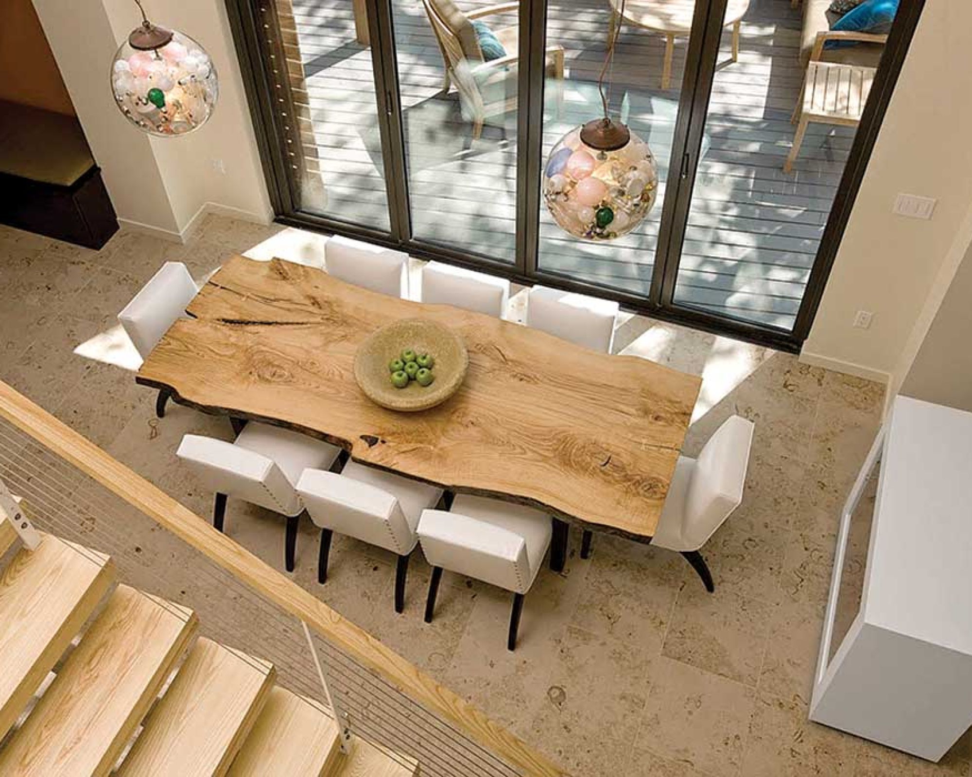 Niech się schowają stoły ze zwykłych sosnowych desek! Te, które Trebord wyciosuje z litych pni dębu, klonu, orzecha, sekwoi czy modrzewia, przypominają portrety drzew