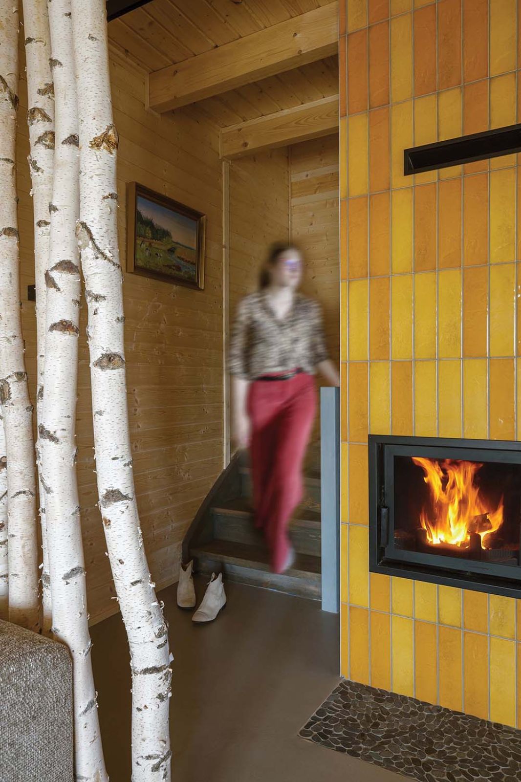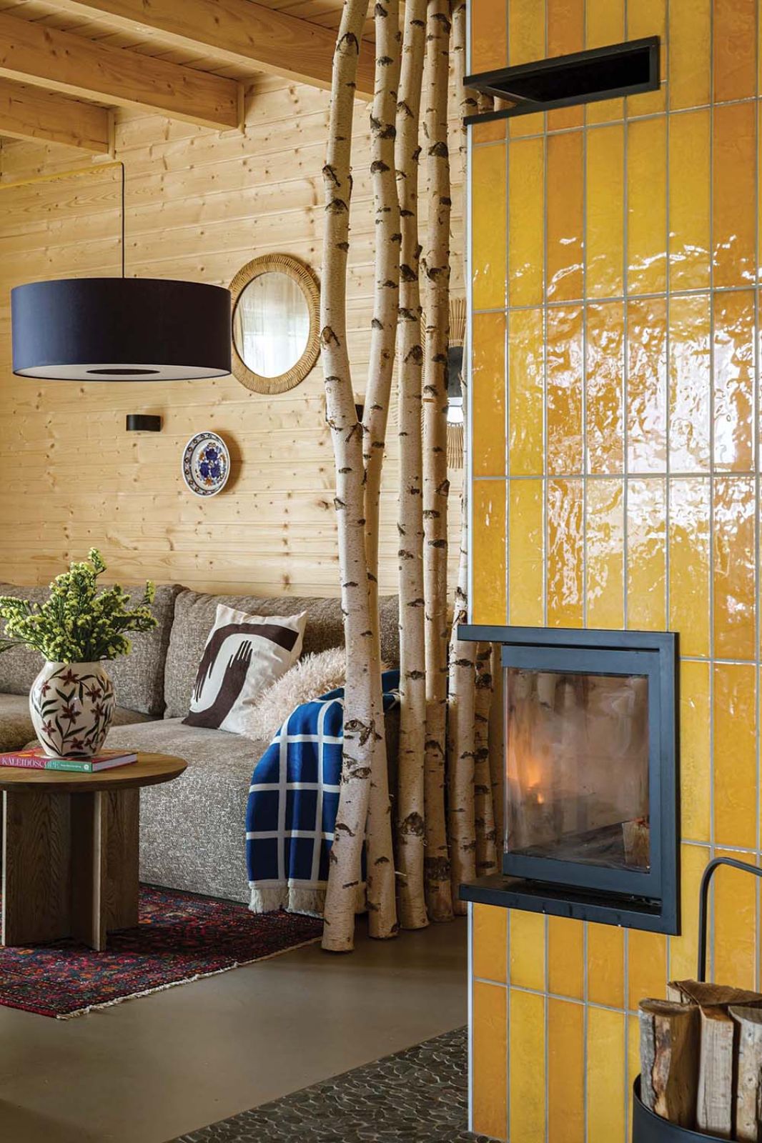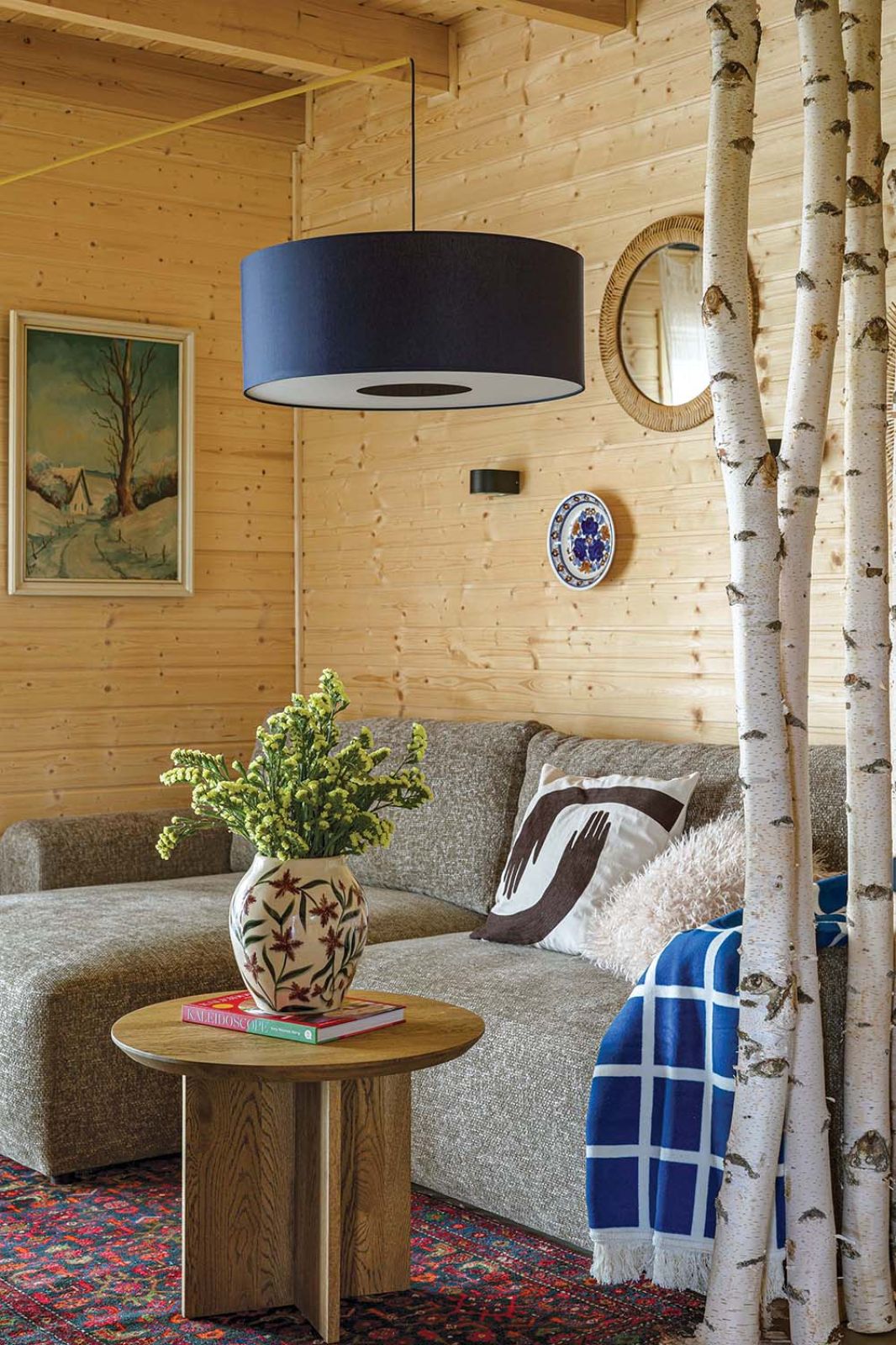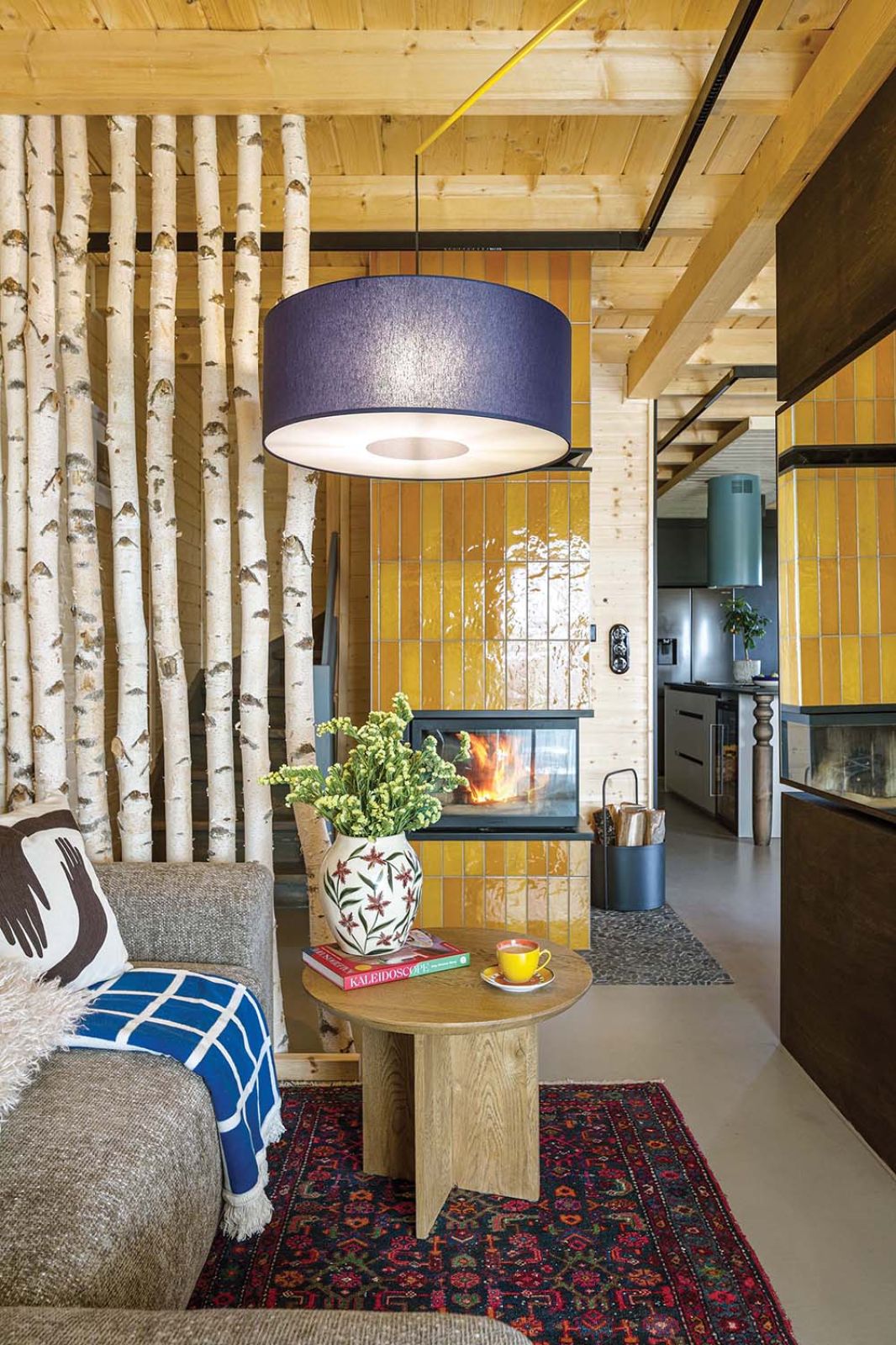Kolejnym pomysłem, takim z ostatniej chwili, było udekorowanie salonu pniami brzóz, a jednocześnie oddzielenie go od holu.