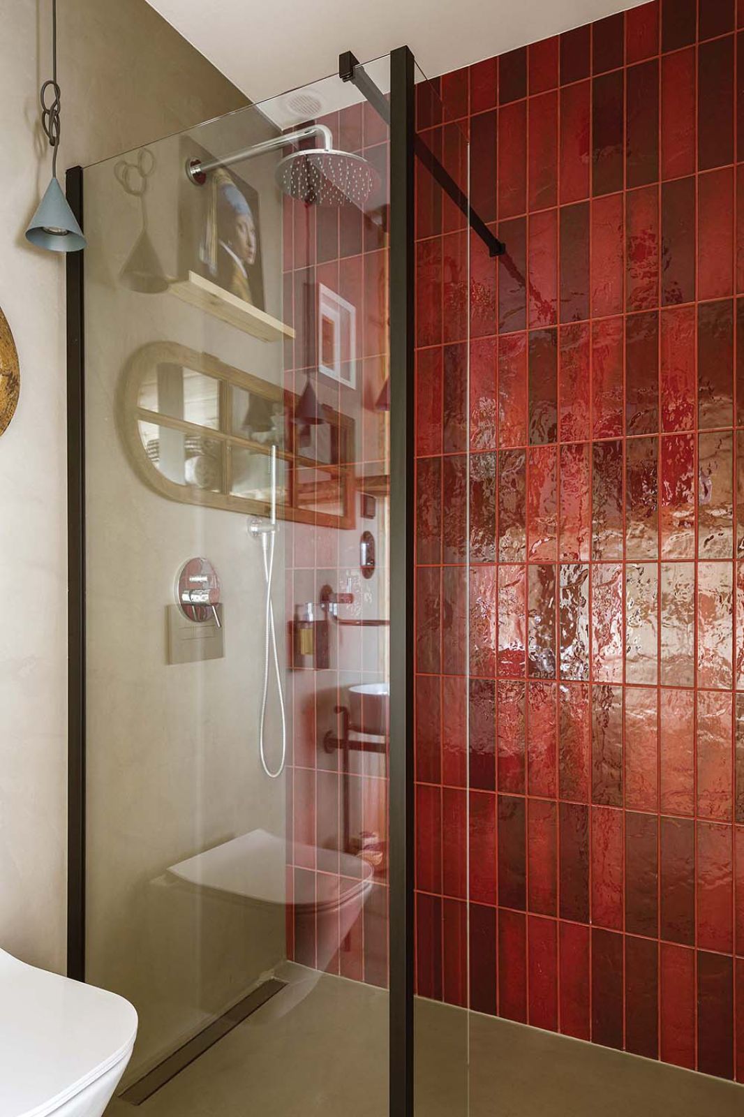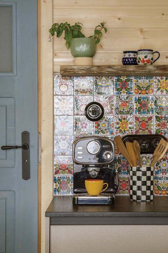 Płytki, które zupełnie odmieniły wnętrza; w salonie w różnych odcieniach żółtego, w łazienkach zielone i burgundowe.