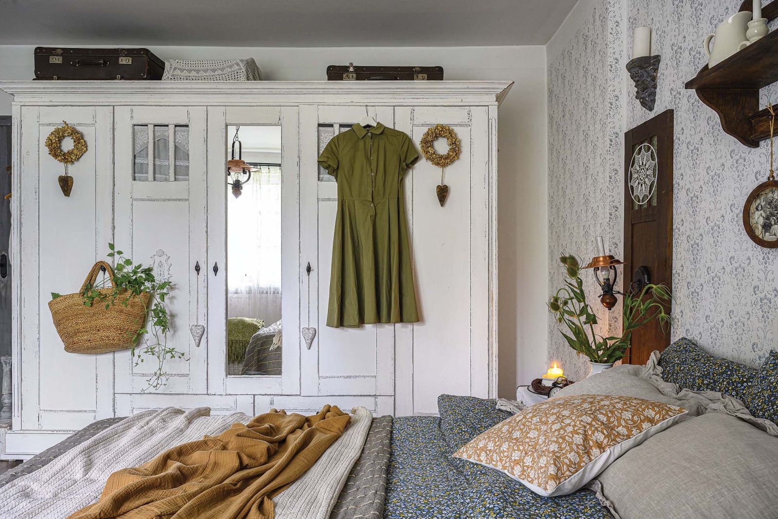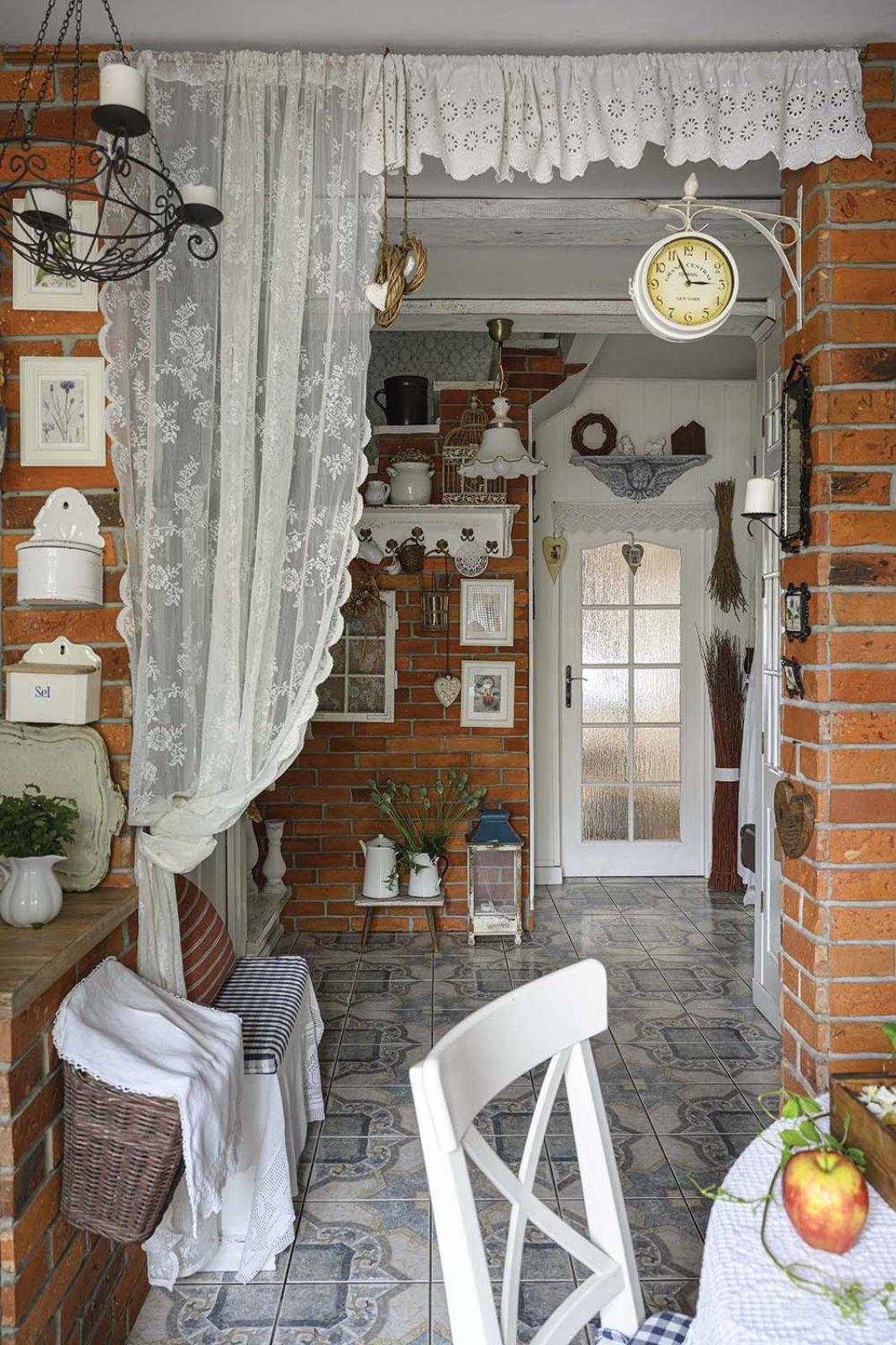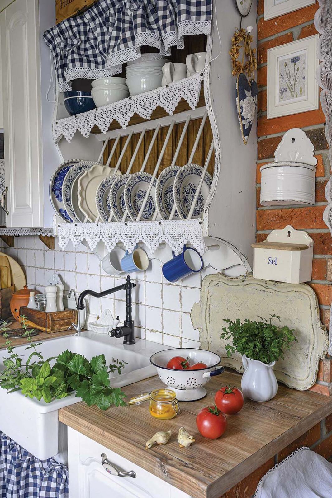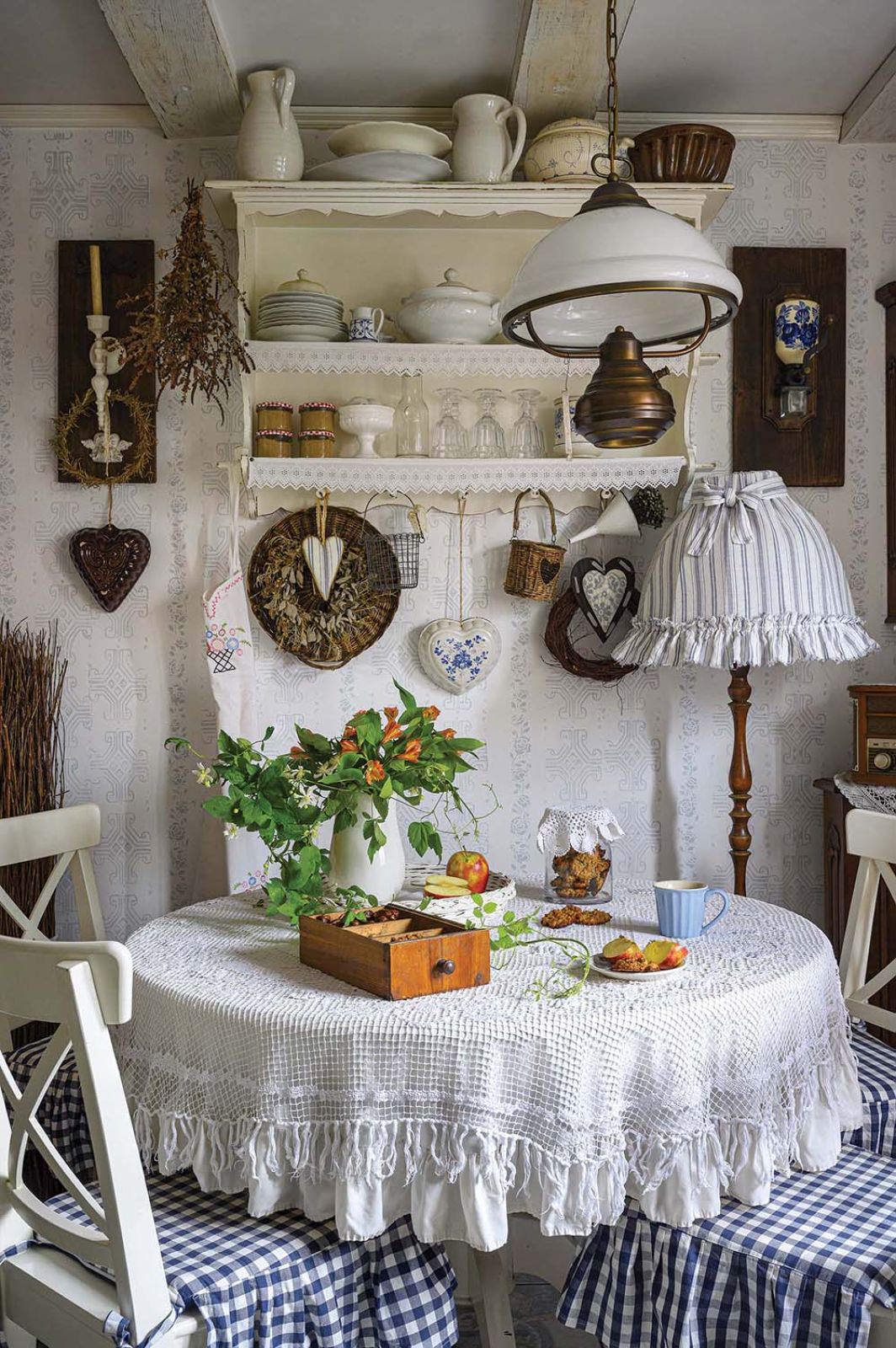 Ciekawym pomysłem jest dekorowanie półek koronkowymi zazdrostkami albo wieszanie na ścianach płóciennych sukienek czy batystowych koszulek.