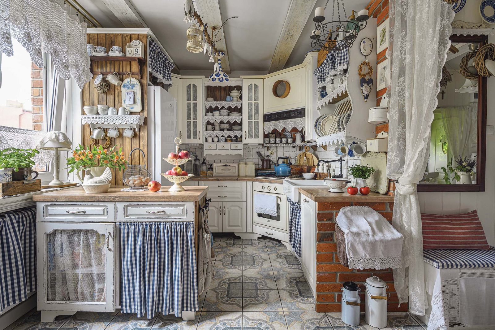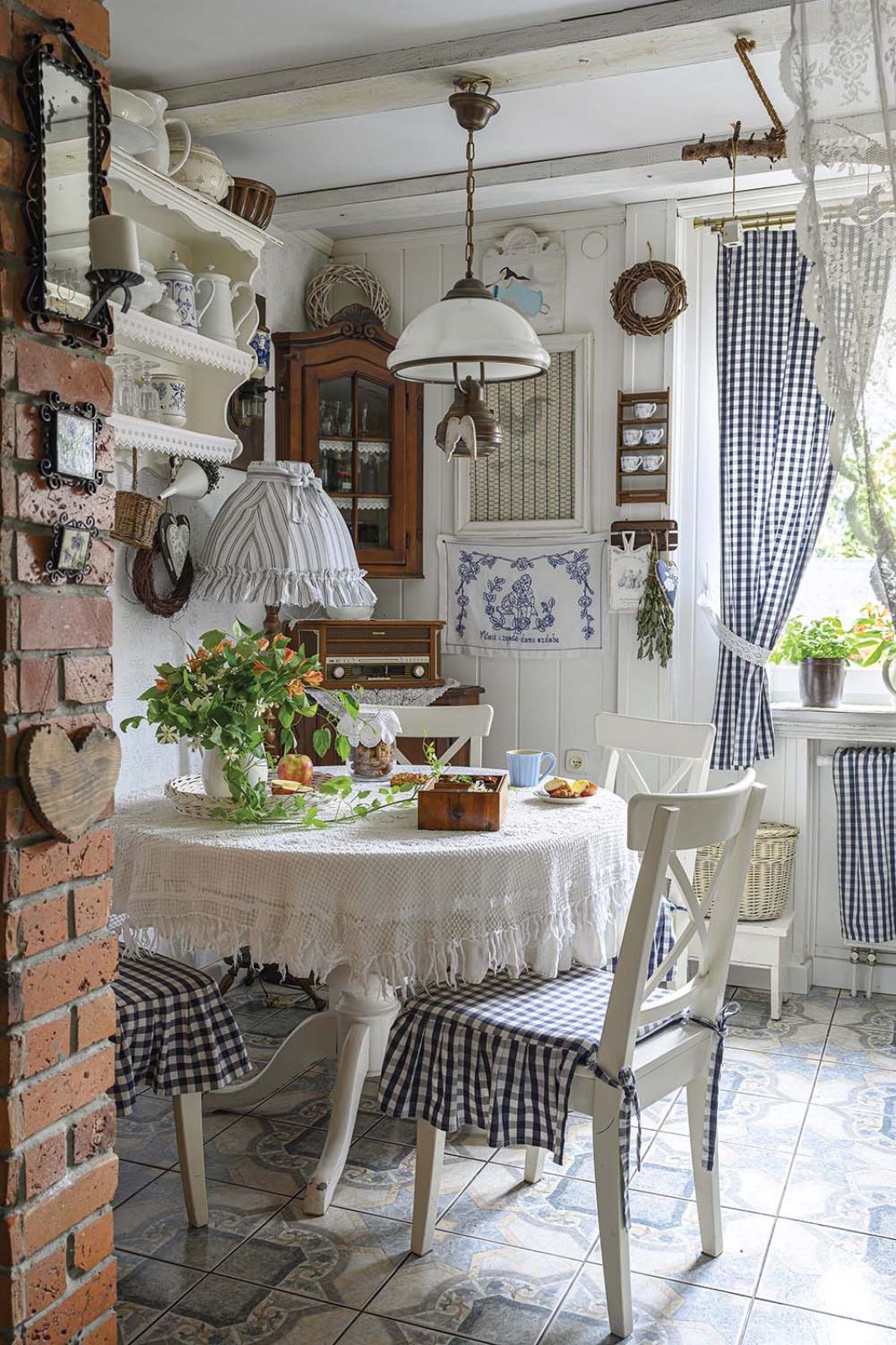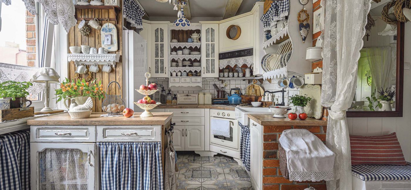 Ciekawym pomysłem jest dekorowanie półek koronkowymi zazdrostkami albo wieszanie na ścianach płóciennych sukienek czy batystowych koszulek.