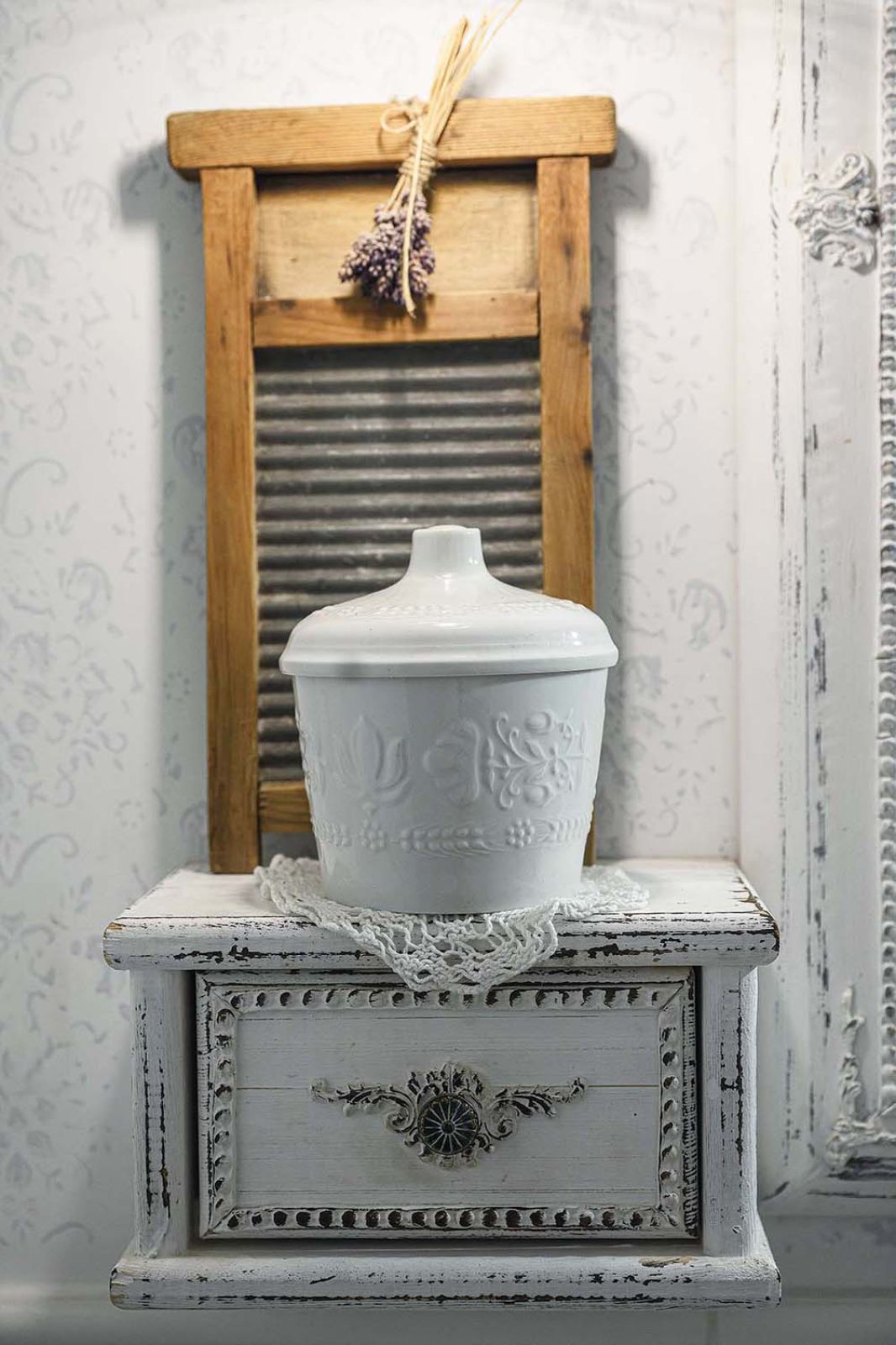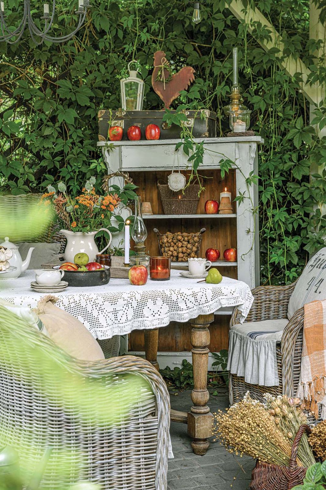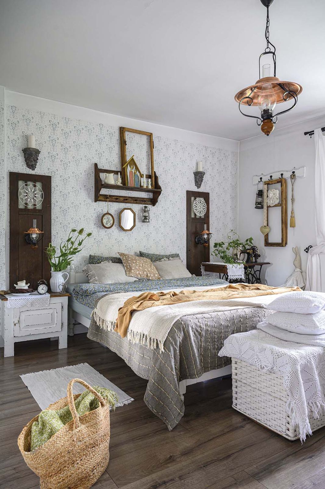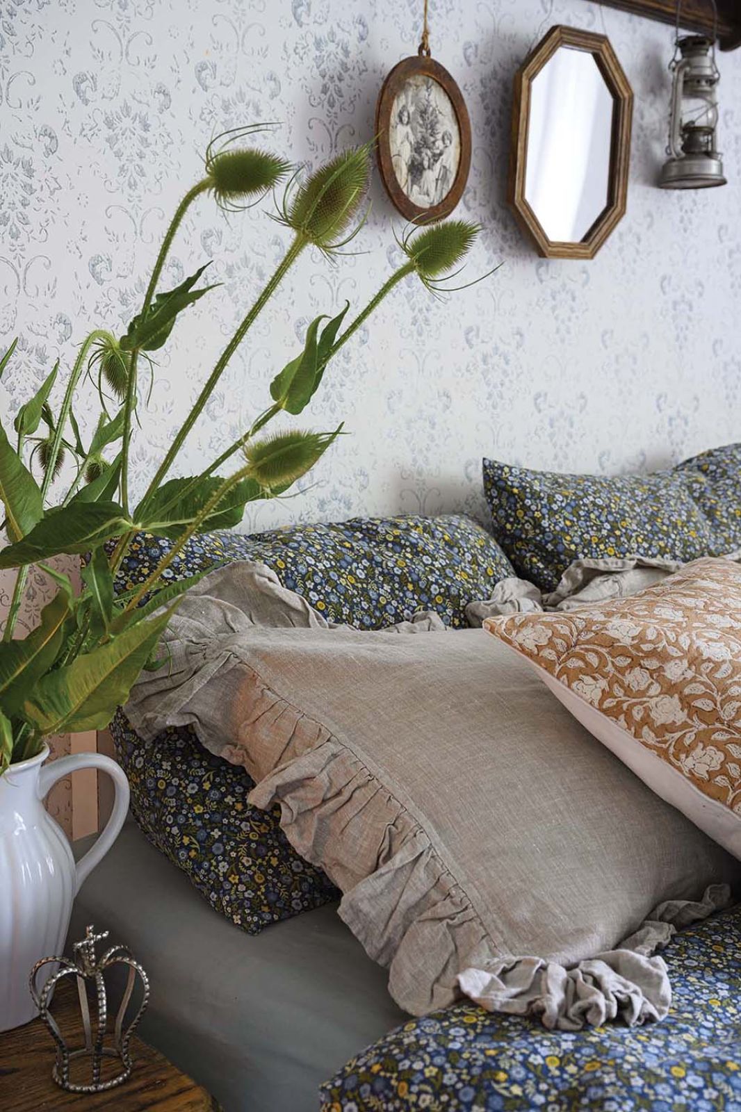 Ciekawym pomysłem jest dekorowanie półek koronkowymi zazdrostkami albo wieszanie na ścianach płóciennych sukienek czy batystowych koszulek.