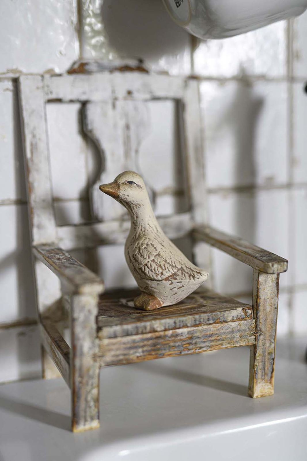 – Zawsze wynajduję coś na dnie kosza na starociach – śmieje się. – Biorę przedmioty uszkodzone, takie lubię. Popatrz na dzbanek ze sklej onym przeze mnie uchem – pokazuje.