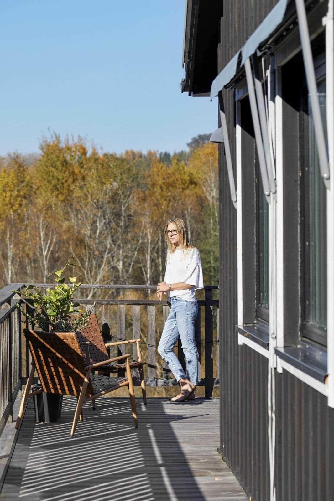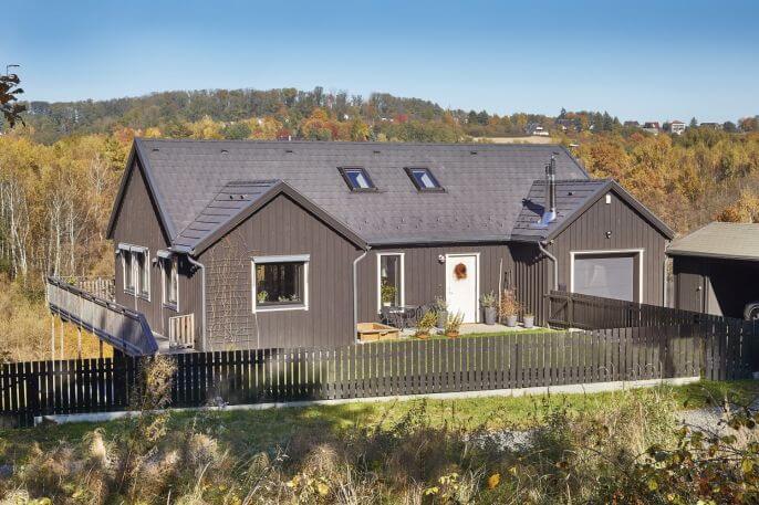 Dom w stylu skandynawskim z elewacją z drewna, w którym drugie życie dostały meble, wanna, a nawet okna