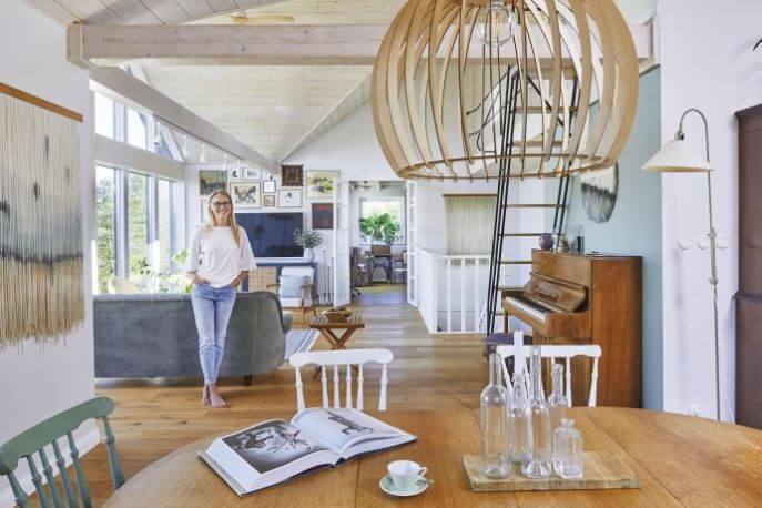 Domy w PolsceZe Szwecji przyjechał pomysł na dom i kolory w tym podkrakowskim siedlisku - drewno, połączone z bielą, beżem i różnymi odcieniami niebieskiego. Także meble i inne rzeczy do wykończenia wnętrz Katarzyna i jej mąż przywieźli ze Skandynawii. A potem ona zgrabnie połączyła pod jednym dachem dwa światy. A przy okazji odkryła nową pasję i dziś robi piękne obrazy ze sznurków.