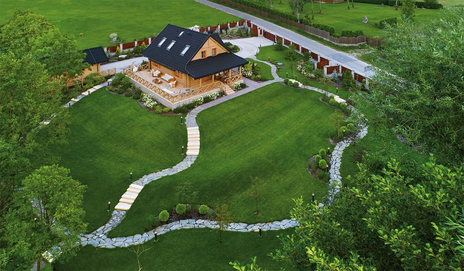 Struga wyglądała tak zjawiskowo, że razem z architektem krajobrazu postanowili tuż obok niej zrobić oczko wodne. Już wiedzieli, jak będzie wyglądał ogród, teraz wystarczyło znaleźć doświadczoną i godną zaufania firmę budowlaną, a kto może wiedzieć więcej o budowie domów z bali niż górale. Wybór padł więc na firmę z południa Polski. – Spodobały się nam ich projekty, nie bez znaczenia było także to, że drewno sprowadzali bezpośrednio z górskich tartaków. Dzięki temu mamy jakąś cząstkę naszych pięknych Tatr na nizinach – dodaje z uśmiechem Jarosław.