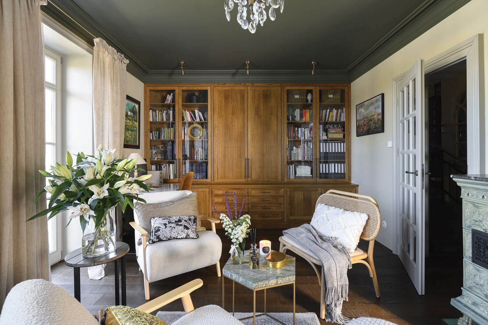 – Styl starej Anglii zawsze był nam bliski, współgrał z nami, chociaż nie potrafię powiedzieć dlaczego – opowiada. – Wnętrza są nieco posępne, ale też przytulne i mają swój urok.