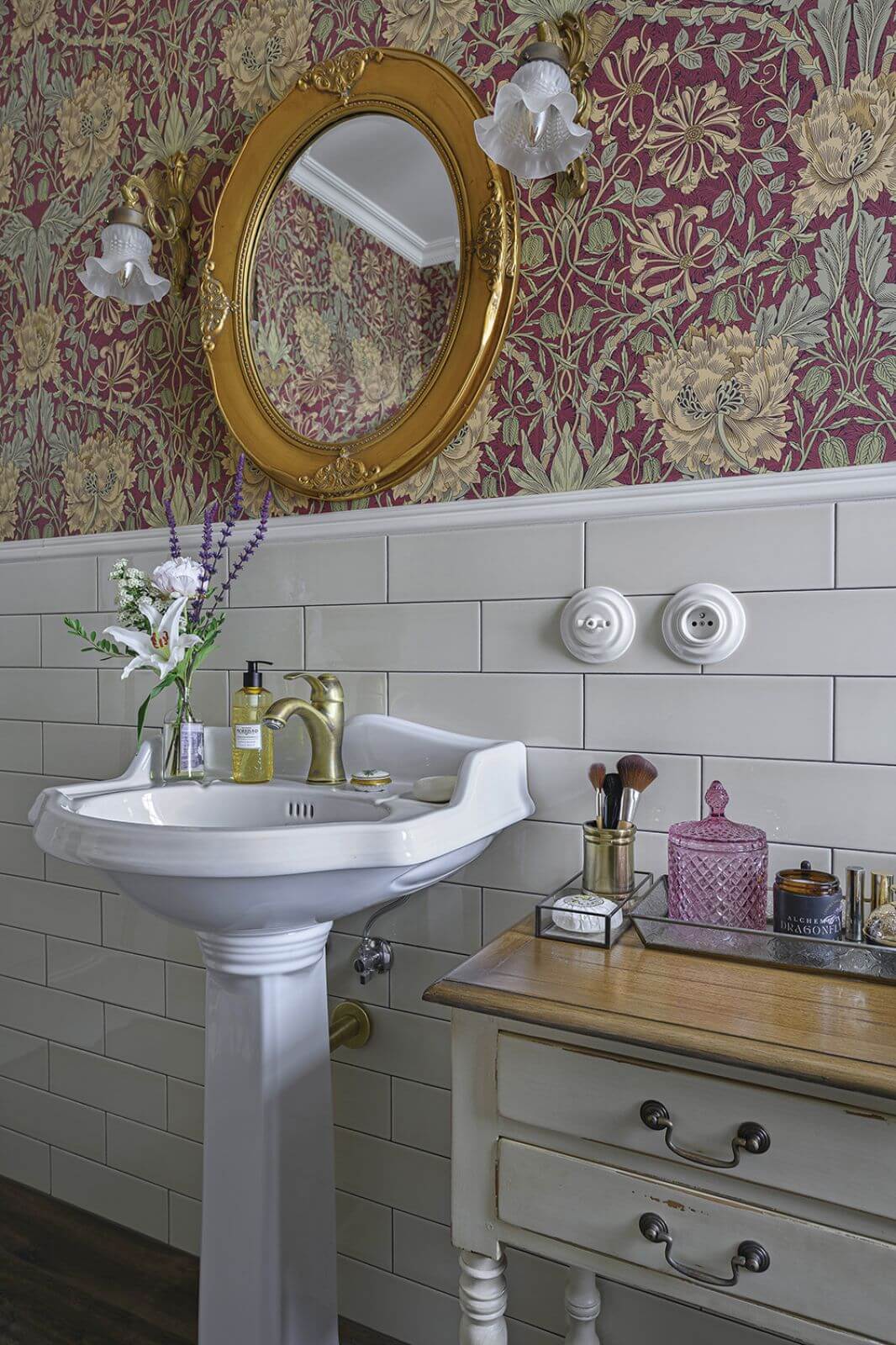 Aranżacja domu w stylu angielskim z tapetami Williama Morisa i sztukaterią