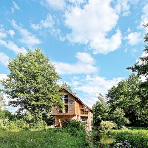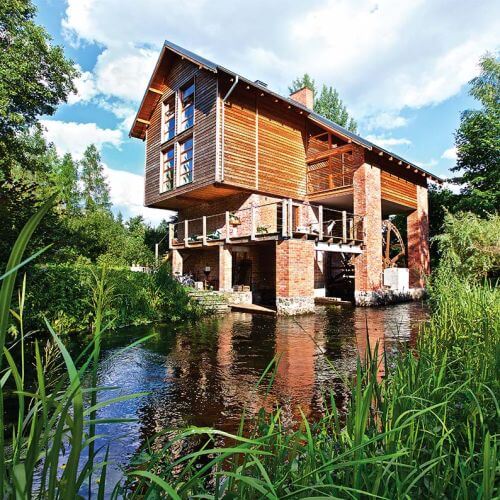 Domy w PolscePiaszczysta polna droga pnie się po warmińskich pagórkach. Za kolejnym wzniesieniem wydaje się, że dalej już tylko las. Ale nie – ostatni zakręt prowadzi na ocienione drzewami podwórko starego młyna, a w drzwiach witają gości Bożena i Andrzej. To XIX-wieczny budynek, przebudowany według projektu architekta Piotra Majewskiego. Zostało młyńskie koło zanurzone