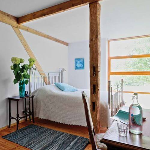 Andrzej nie tylko doglądał budowy, ale też sam tu pracował. Zależało mu, by zachować jak najwięcej oryginalnych elementów, takich jak np. drewniane wsporniki.