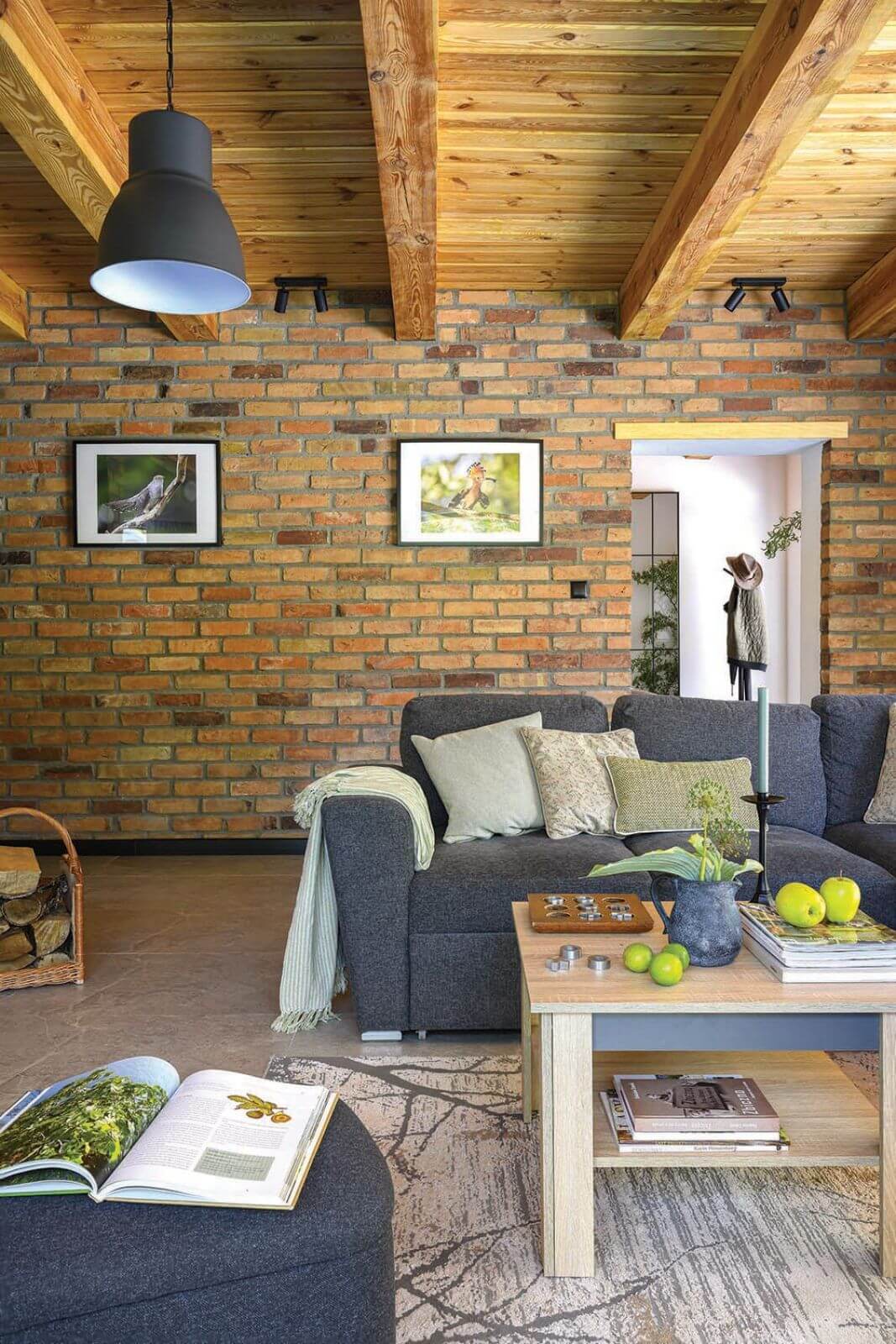 Na dole, w miejscu obórki, w której stały paśniki dla zwierząt, urządzili przestronny salon z otwartą kuchnią i jadalnią, a na górze, gdzie kiedyś składowano siano – sypialnie.
