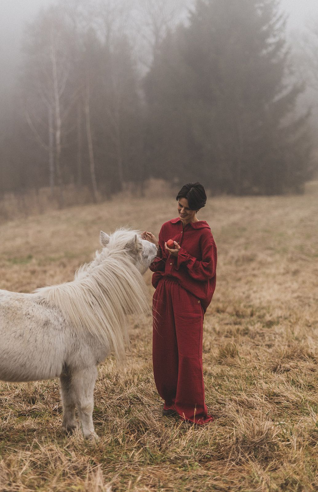 Sesja została zorganizowana w pensjonacie Trzy Morza, miejscu wyciszenia i powrotu do natury. Każda z kobiet biorących udział w projekcie wniosła do niego niepowtarzalny fragment – talent, rzemiosło i osobiste spojrzenie. Dzięki temu powstał materiał, który idealnie oddaje klimat Bożego Narodzenia w rytmie slow: prawdziwy, ciepły i pełen bliskości.