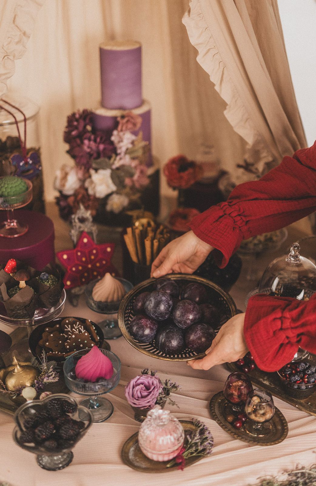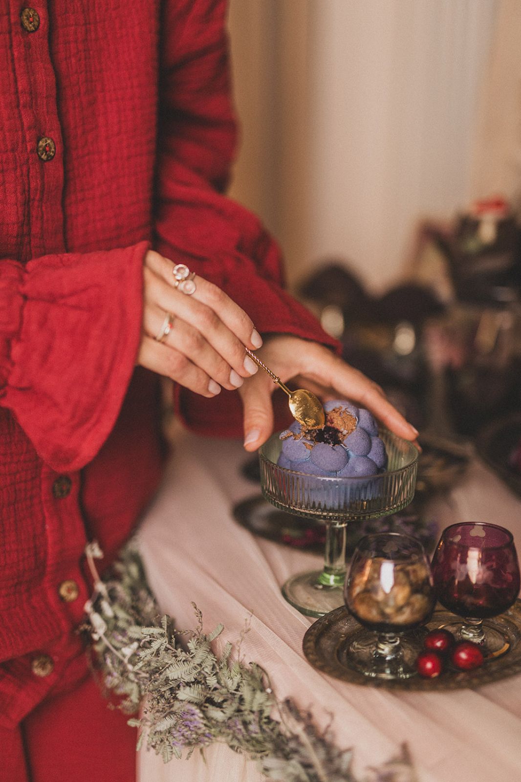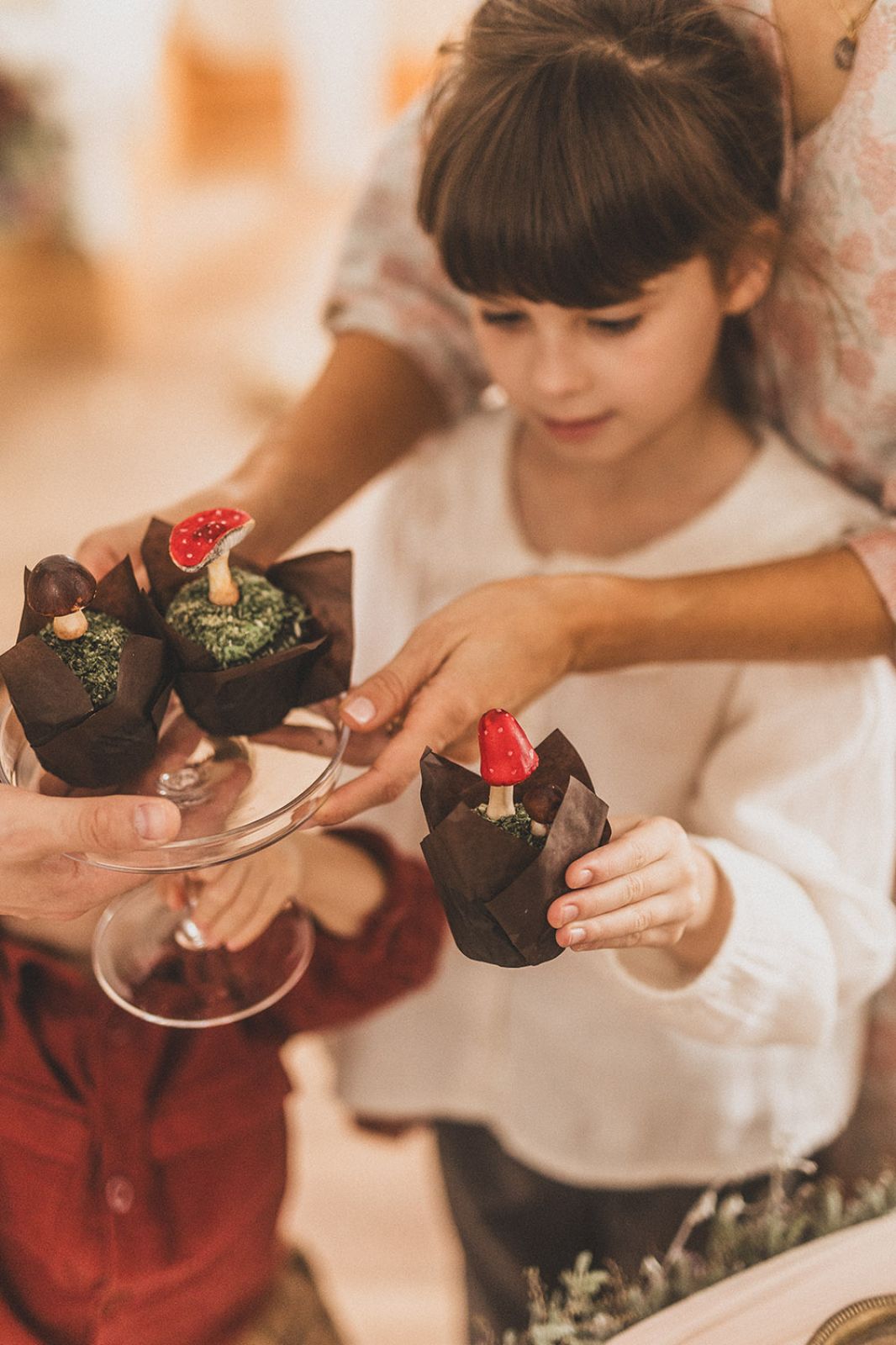 Na talerzykach stoją fioletowe desery ukryte w kryształowych pucharkach, zielone muffiny ozdobione maleńkimi muchomorkami, a dziecięce dłonie ostrożnie chwytają wypieki, jakby trzymały w nich małe, delikatne talizmany...