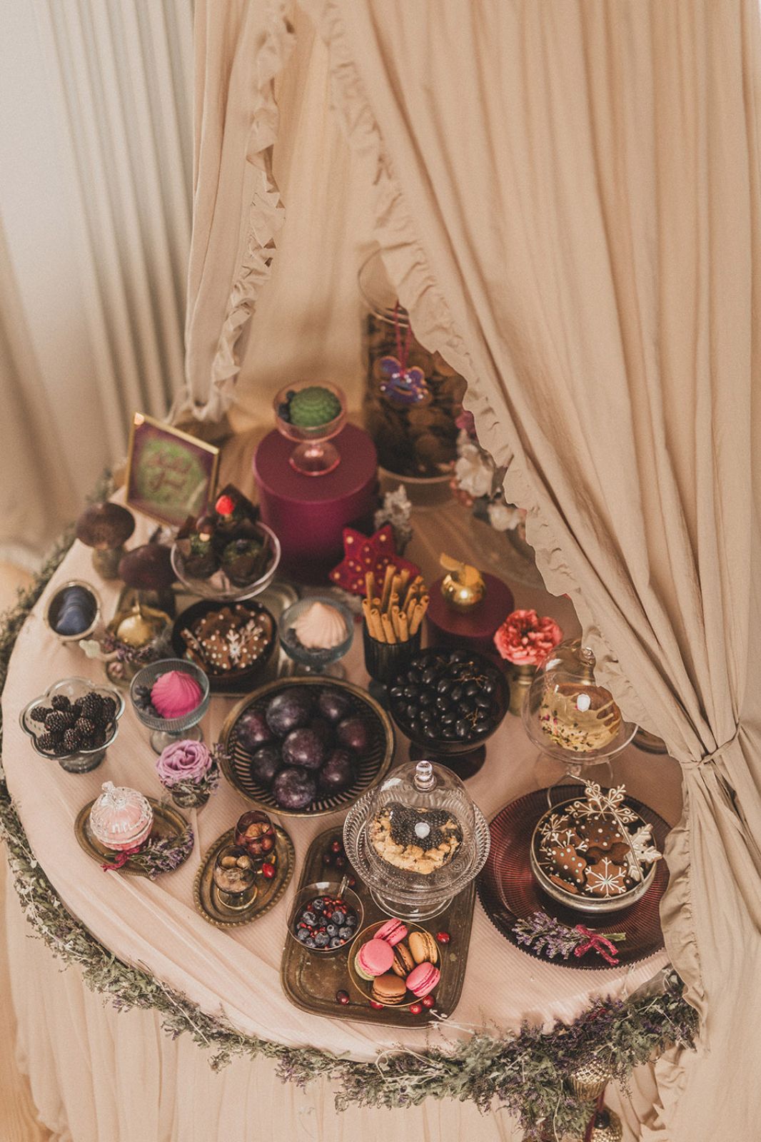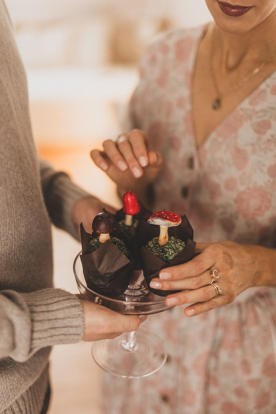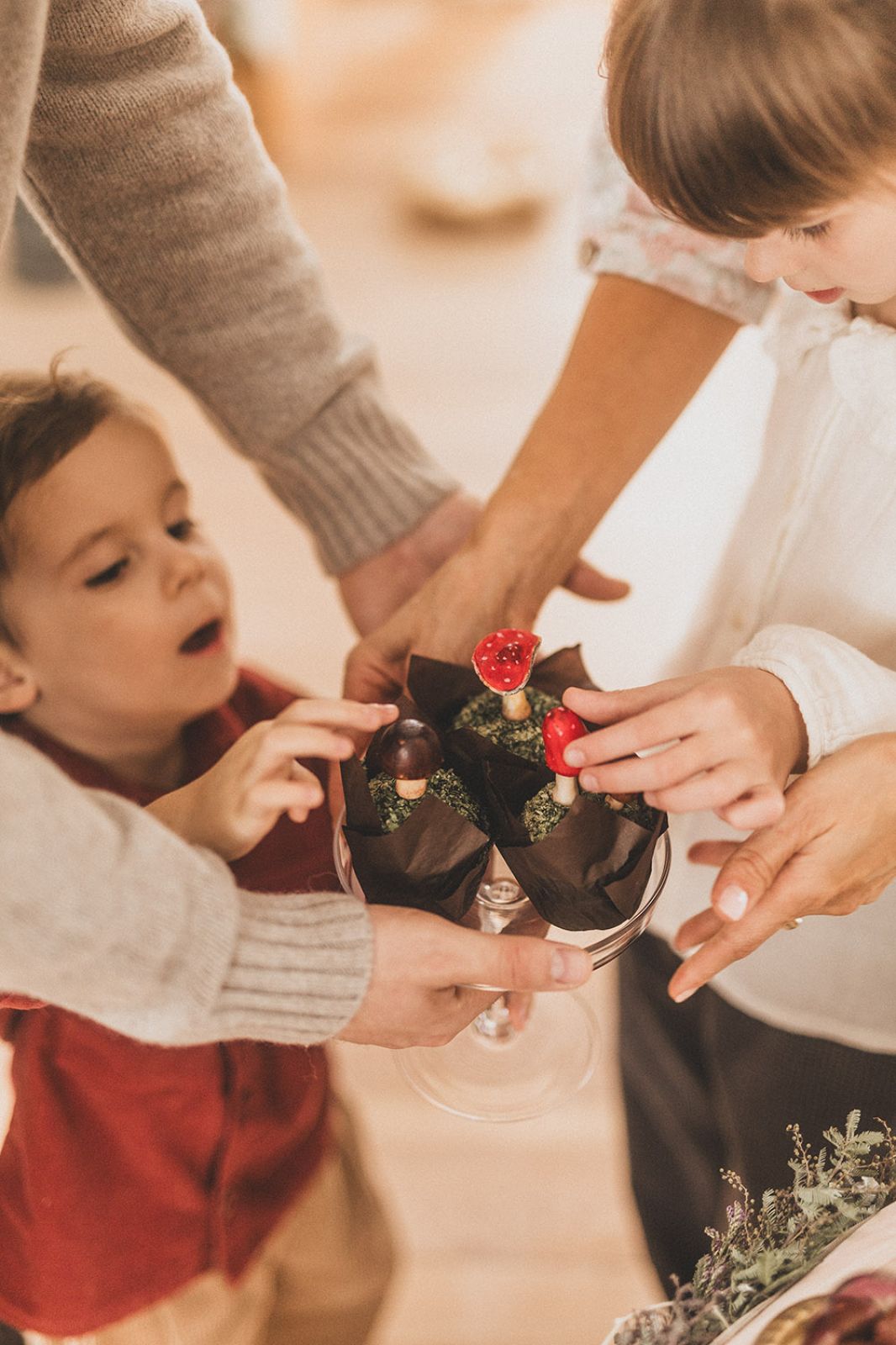Na talerzykach stoją fioletowe desery ukryte w kryształowych pucharkach, zielone muffiny ozdobione maleńkimi muchomorkami, a dziecięce dłonie ostrożnie chwytają wypieki, jakby trzymały w nich małe, delikatne talizmany...