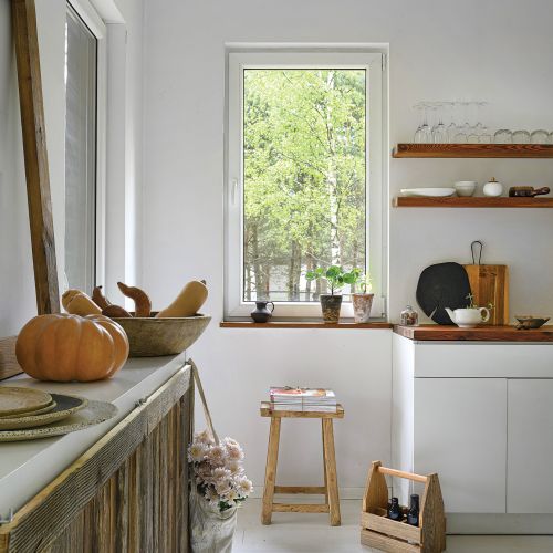 Jak zatrzymać te wszystkie emocje związane z wymarzonym domem? Urok jesiennego bukietu z łąki, mgłę za oknem, zachód słońca, dzierganie swetra na drutach… Dom ma swoje konto na Instagramie: Drewniane Morze. Skąd taka dziwna nazwa? – I drewno, i morze są dla nas bardzo ważne. Jeśli mamy trudniejszy czas, wsiadamy w samochód i jedziemy nad Bałtyk. Zestawienie tych słów brzmi tak abstrakcyjnie, że aż pięknie. Zaczytuję się książkami Jonathana Carrolla, w których znajduję podobne słowne zabawy – mówi.