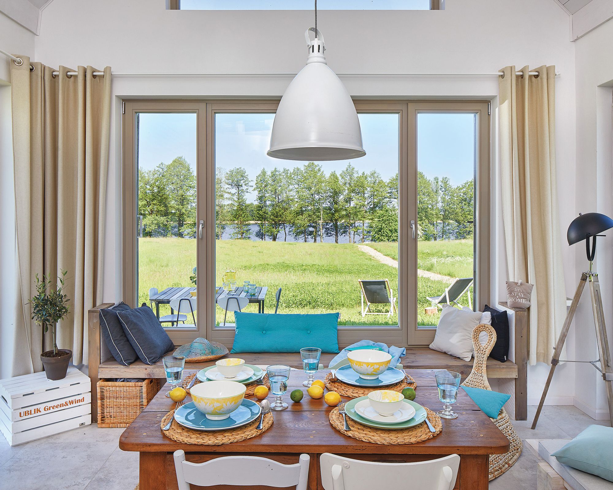 Rustykalna chata na Roztoczu - ciepłe drewniane wnętrza, niebieskie dodatki i sielski klimat.