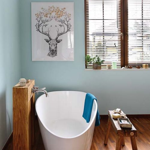 - Dobierz odpowiednią kolorystykę. Rustykalna łazienka uwielbia ciepłe odcienie – brązy, beże, a także delikatne szarości i biel.