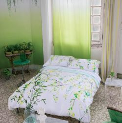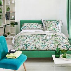 Biel zestawiona z morskim albo z pudrowym różem czy czarnym kolorem będzie idealna dla osób, które potrzebują wyciszenia w sypialni. Jeśli więc nie przepadasz za wyrazistymi kolorami, to propozycja na lato idealna dla Ciebie. Aby było ciekawiej, wybierz lamówki albo zdobne guziki. Połóż też na łóżku kilka poduszek różnej wielkości. A jeśli skusisz się na wzór, wybierz geometrię czy monochromatyczne ptaki i kwiaty.