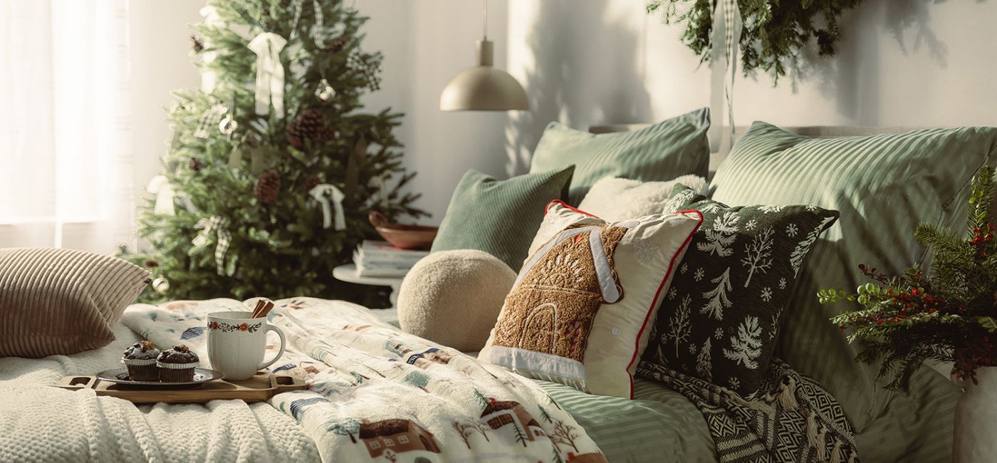 Nie chodzi tu tylko o obrus czy kilka poduszek do salonu. Warto rozejrzeć się za pościelą z motywem choinek czy bałwanków.