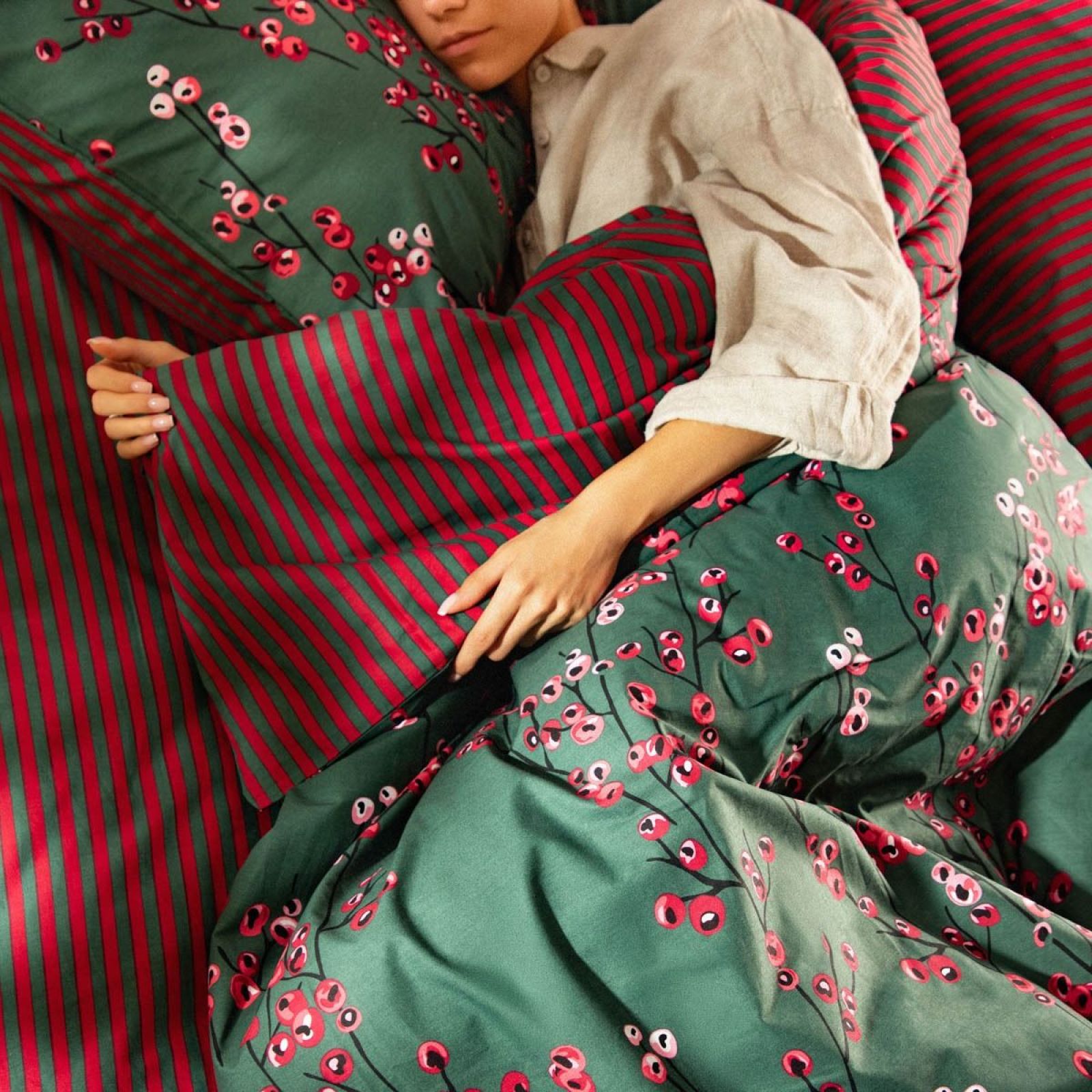 Jeśli lubimy bardziej wyraziste dekoracje, postawmy na klasykę czyli poszwy i poszewki w kolorach czerwieni i zieleni.