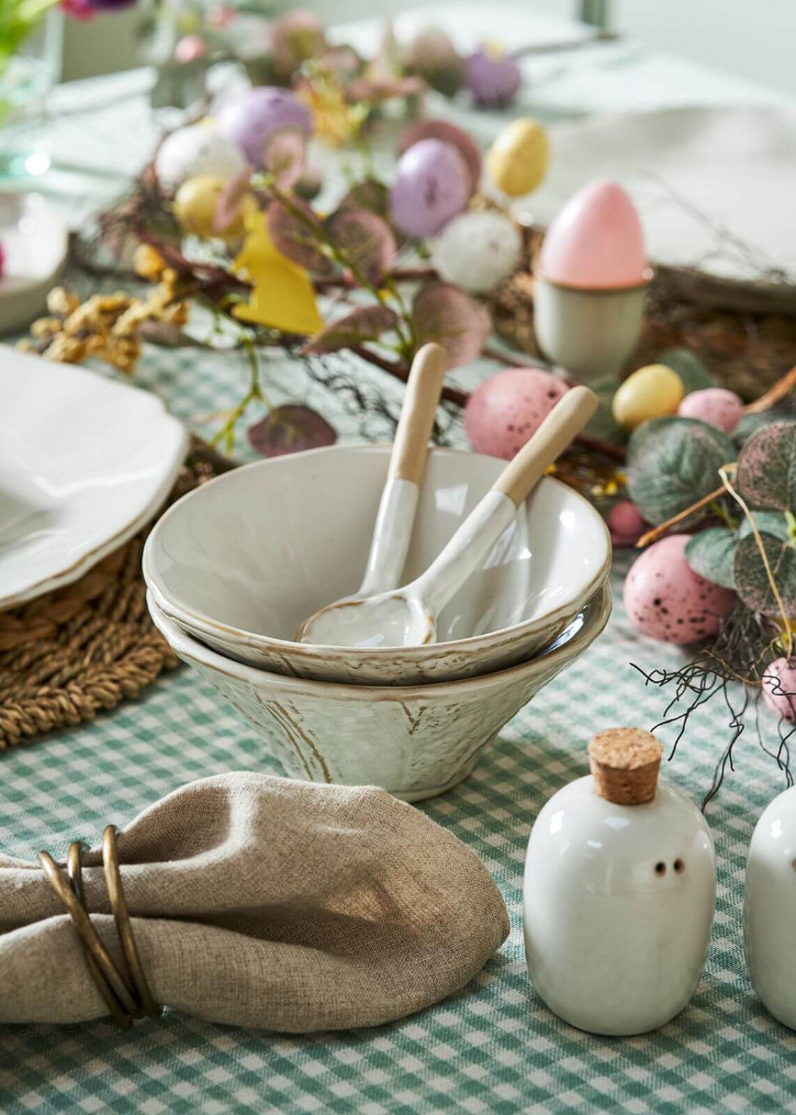 Wielkanoc na wsi to także czas małych przyjemności. Ceramiczne zajączki, które przypominają o tych żyjących w naszych ogrodach, świeczniki zrobione ze skorupek jaj, zasuszone kwiaty z zeszłorocznych zbiorów – te małe detale tworzą czar wiejskiego domu.