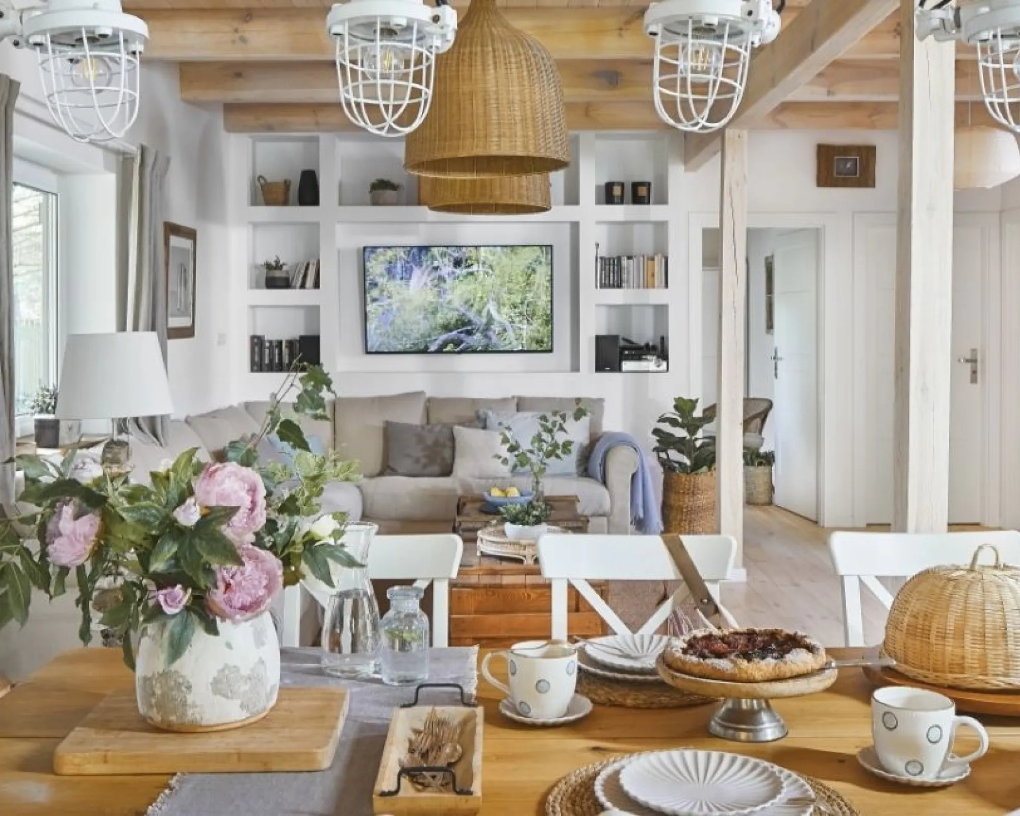 Chatka marzeń: ciepłe wnętrza w bieli i drewnie w stylu farmhouse