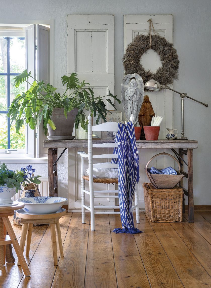 Dom w stylu shabby chic z nutką eklektyzmu i błękitnymi dodatkami