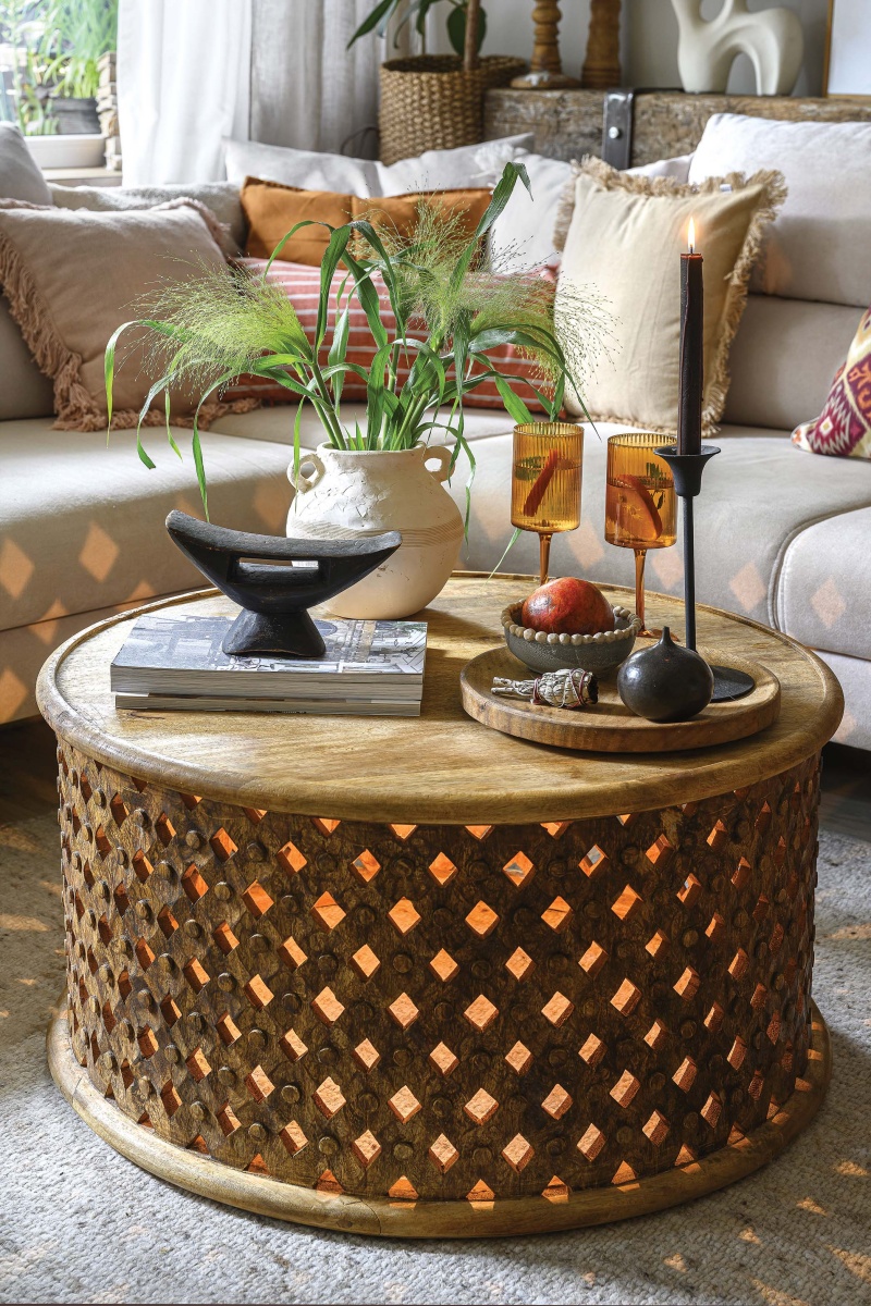Monika miała marzenie: wiejski dom. Spełniła je, na przekór stereotypom, nie opuszczając miasta. Są tu i belki sufitowe, i meble ze starego drewna, i rozległy widok na zieleń. A jasnym i lekkim wnętrzom klimatu dodają marokańskie elementy – plecionki, tkaniny, lampiony.