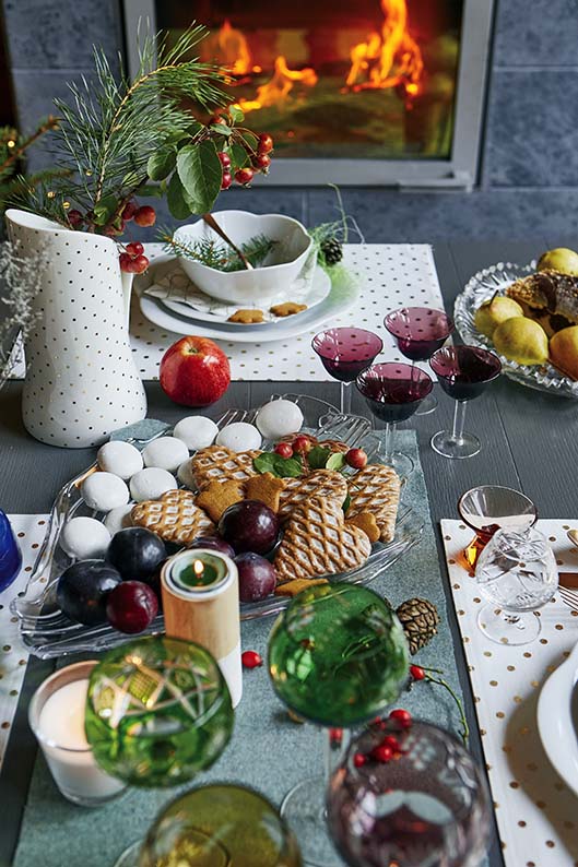 Włoski drewniany stół zaprojektowany przez Paolę Navone jest tak piękny, że szkoda go zasłaniać obrusem, ale święta zobowiązują.