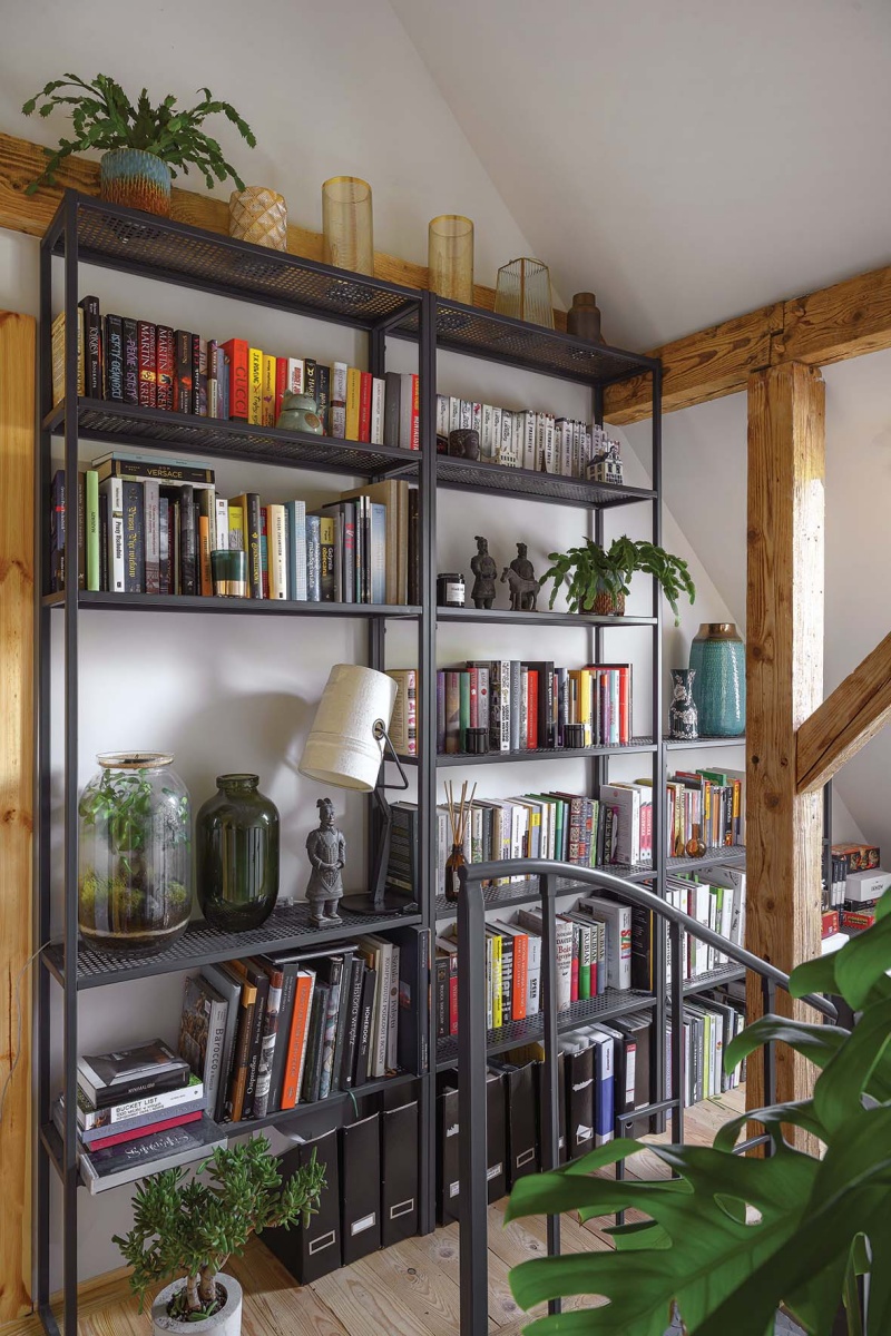 Stary dom na Mazurach ze współczesnym wnętrzem regał