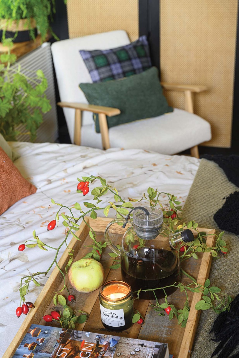 • Stary dom na Mazurach ze współczesnym wnętrzem taca na łóżku