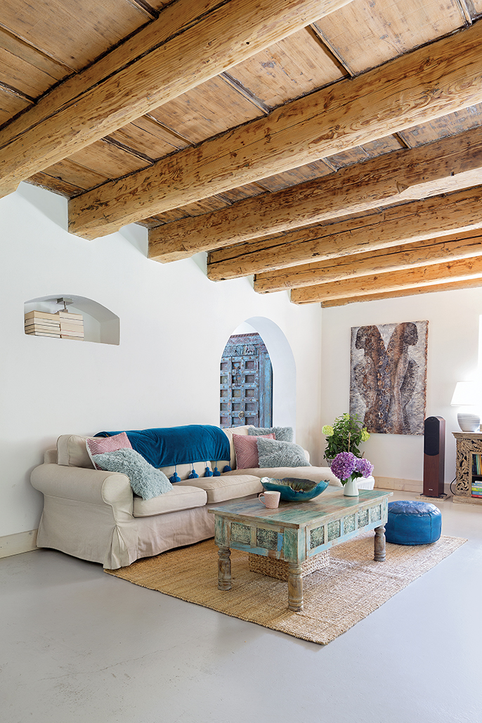 Oto przykład, jak połączyć stare z nowym! Remontując ten wiekowy dom na Śląsku Cieszyńskim Joanna odnowiła starą cegłę i belki sufitowe, kolebkowe sklepienia i skrzynkowe okna, ale urządziła go prosto i oszczędnie. Dużo bieli, niebieskie akcenty, surowa podłoga pokryta chlorokauczukiem i współczesne obrazy, wydobywają piękno wiekowych detali, a zarazem nadają mu lekko południowy charakter. Od progu czuć tu dobrą enegię.