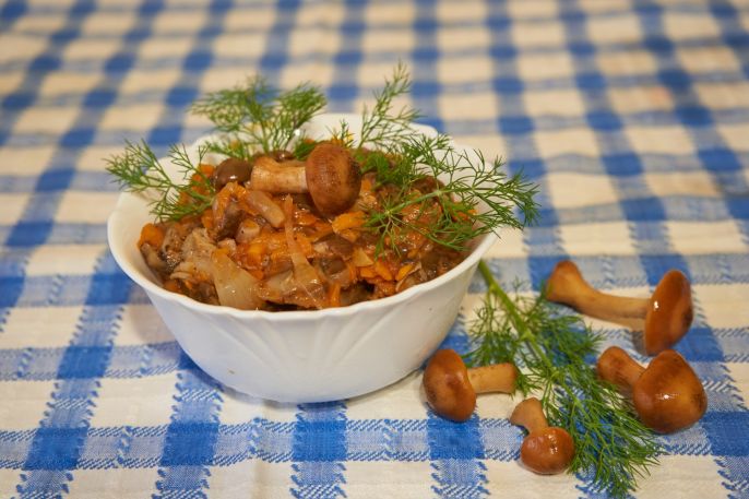 Przepis pierwszy: Smażone opieńki z cebulą.