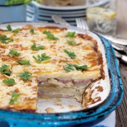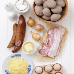 Zapiekanka z ziemniakami, boczkiem i kiełbasą