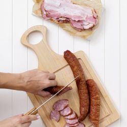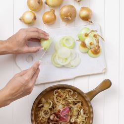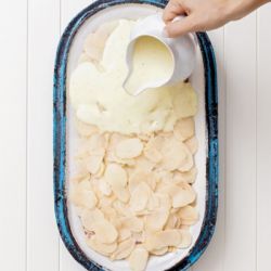 Obejrzyj galerię i zobacz, jak przygotować zapiekankę z ziemniakami, boczkiem i kiełbasą krok po kroku.