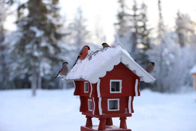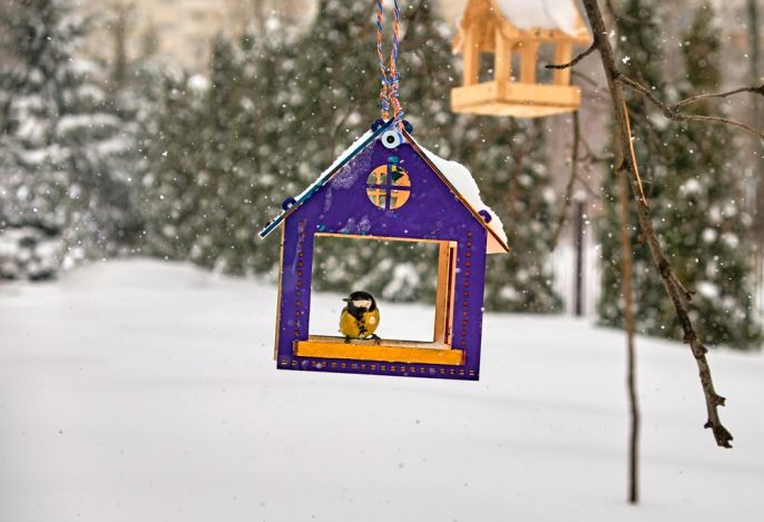 Karmnik dobrze zawiesić w miejscu, z którego możemy obserwować ptaków — obserwowanie ptaków zimą to jedna z najprzyjemniejszych aktywności na wsi.