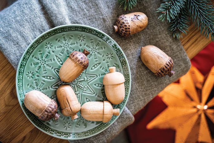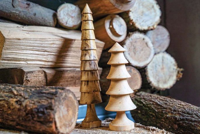 Od trzech lat robią toczone ozdoby: choinki, drewniane bombki, żołędzie, misy i patery, nieduże meble – stołki czy stoliki. Ale dziełem Piotra są także proste ławki czy ryczki, jak w Wielkopolsce nazywa się niskie podnóżki.