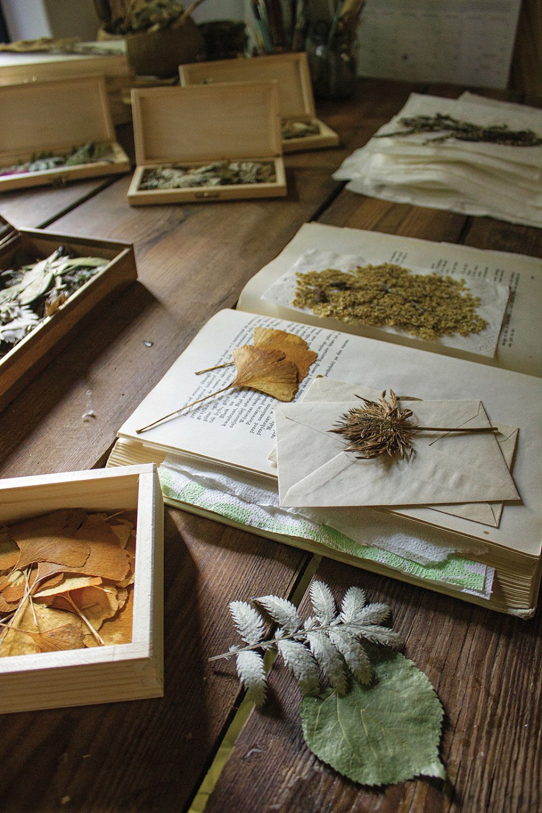 Rośliny znajduje w czasie spacerów z psami. Gwiazdnice, bylice, pokrzywy, czarny bez suszy w książkach, otulone w pieluszki z papieru łatwo chłonącego wilgoć.