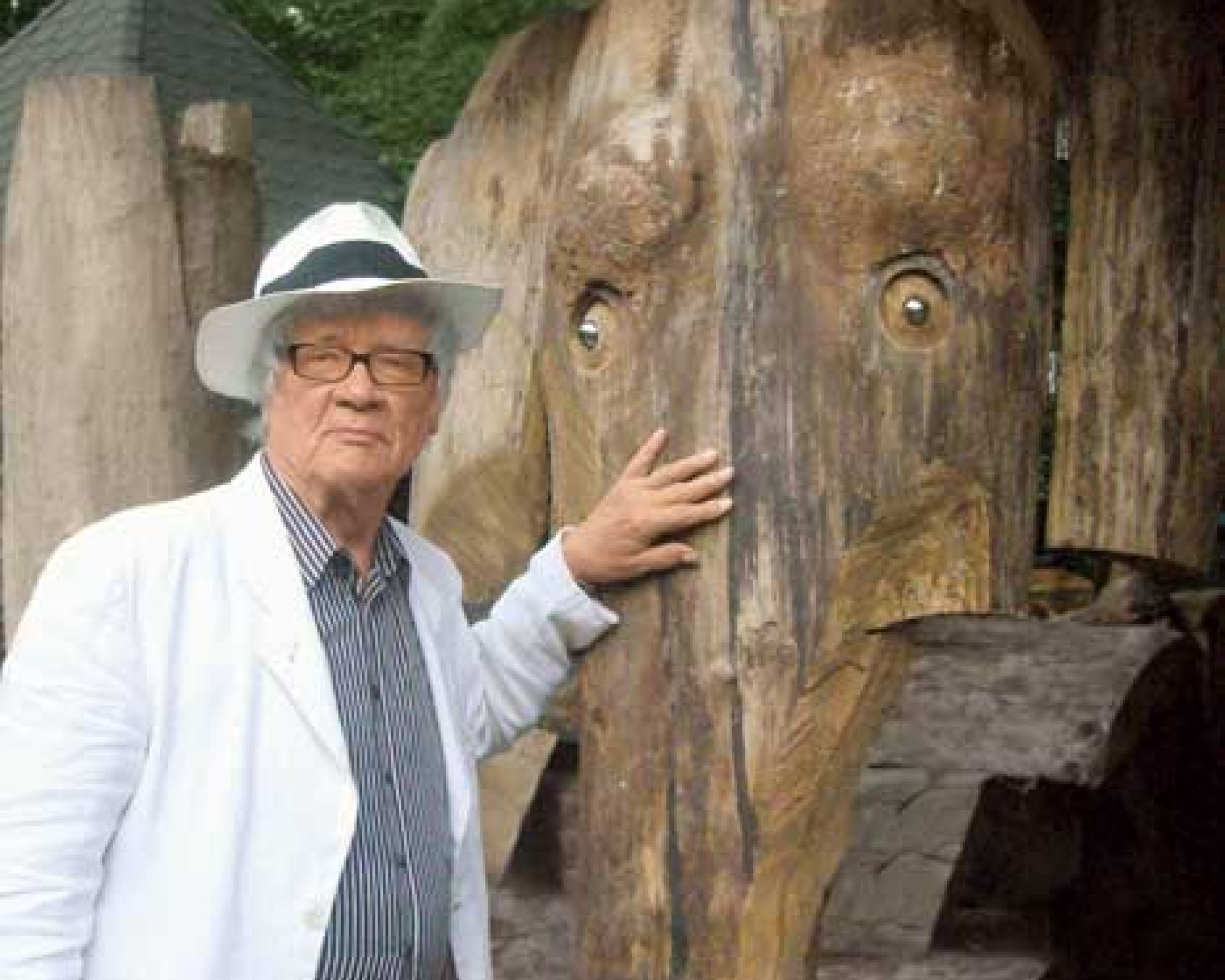 Na podwórku witają nas radośnie dwa psy, a za domem, wśród zieleni, urzęduje drewniana menażeria