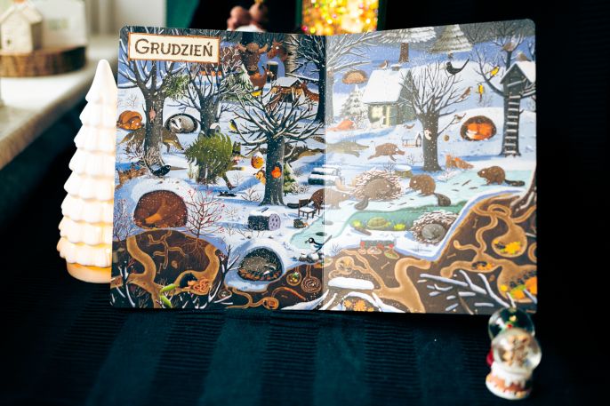 Każda strona odsłania inną porę roku: wiosenne budzenie, letnie tętniące życie, jesienne przygotowania do zimy i wreszcie zimowe wyciszenie.