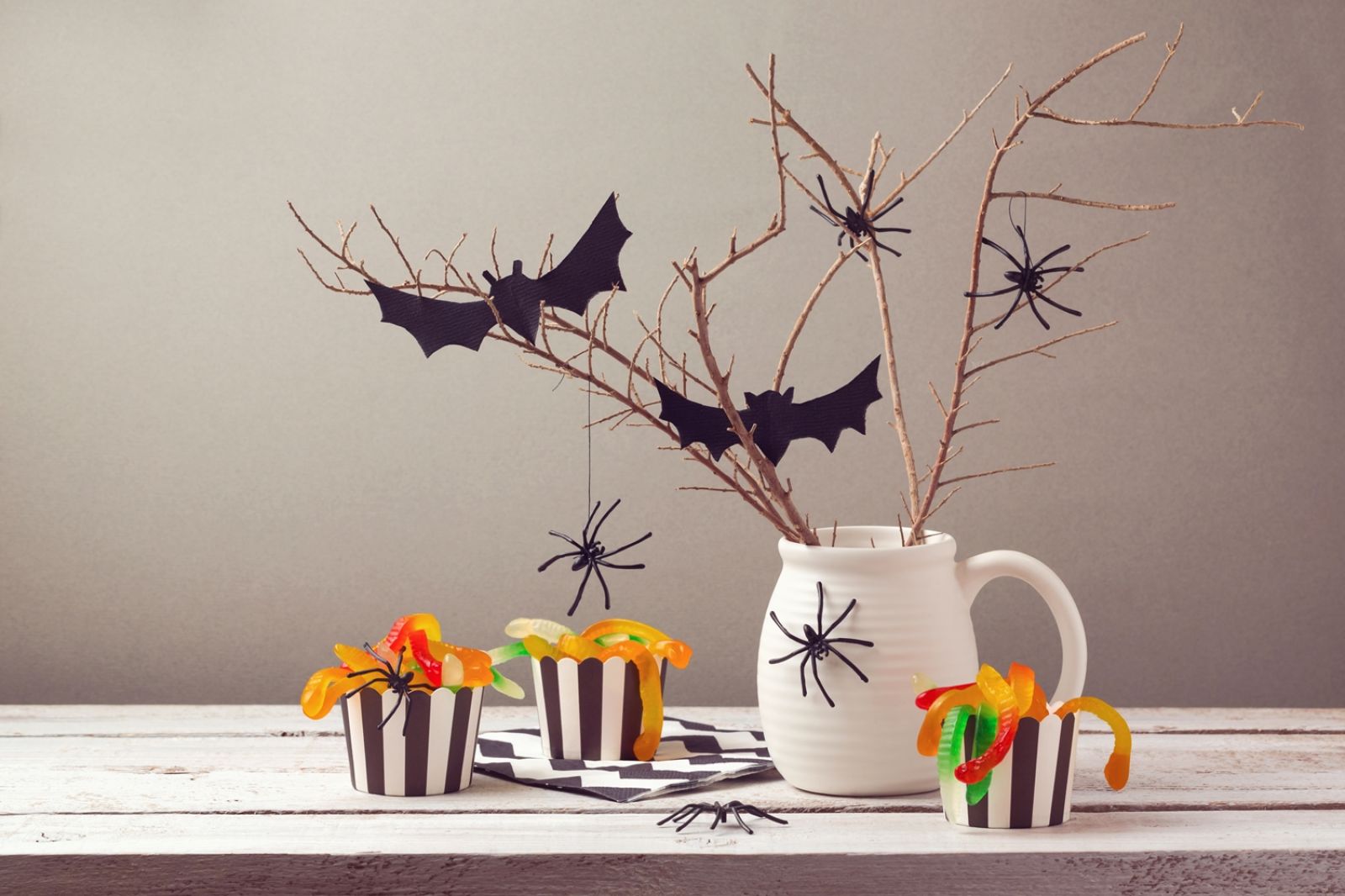 Jednak piękne ozdoby powstają również z papieru i filcu. Świetnie prezentują się w towarzystwie sztucznej pajęczyny. Można ją wykonać samemu, na przykład z białej włóczki. Gotowe produkty są też bez trudu dostępne w sklepach internetowych.