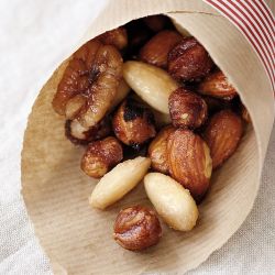 Weź: • 2½ szklanki ulubionych orzechów: laskowych, włoskich, pekan, nerkowca, migdałów • ¼ szklanki cukru • 1½ łyżki miodu