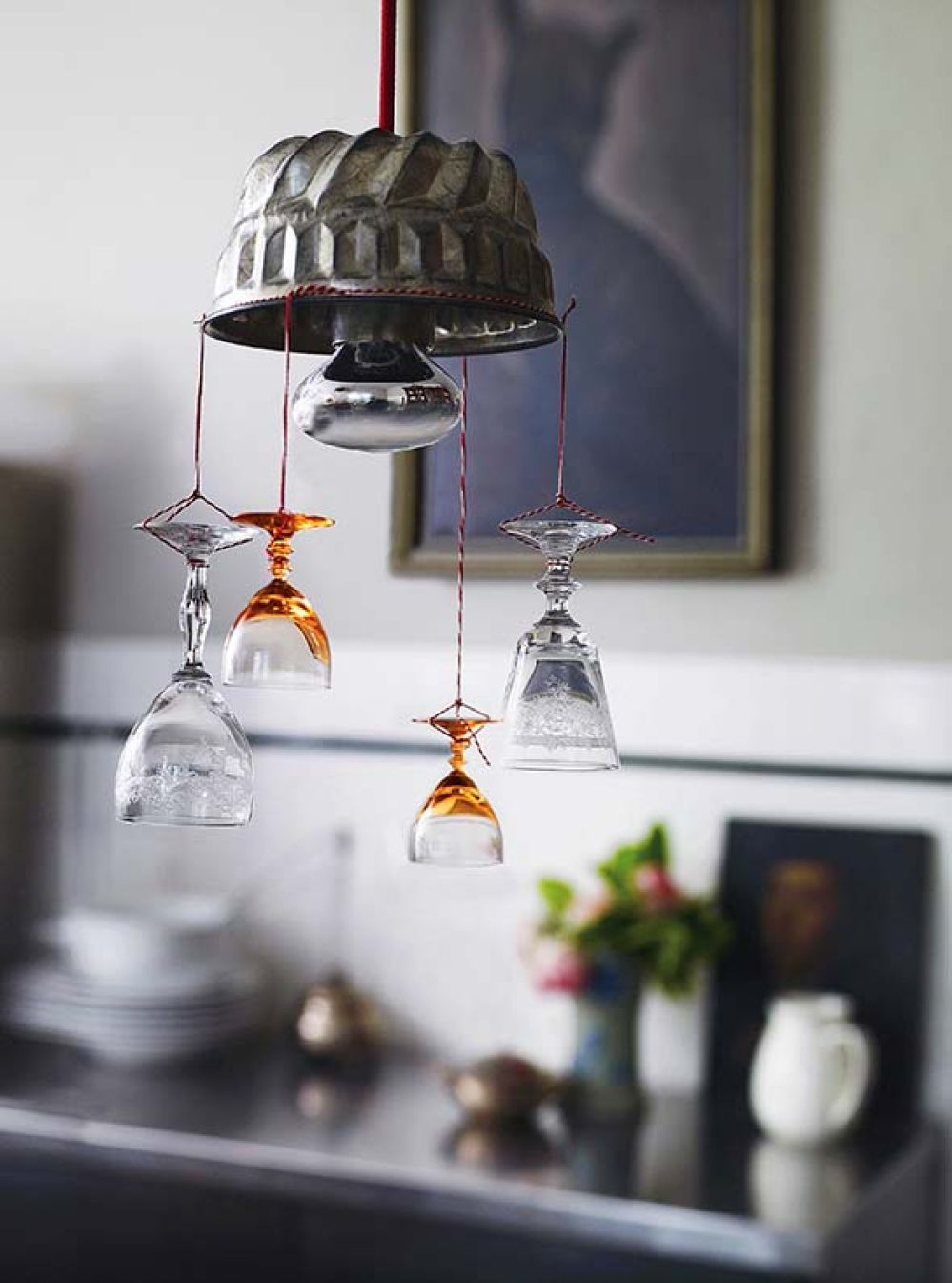 Kryształowe lub szklane kieliszki będą ozdobą lampy