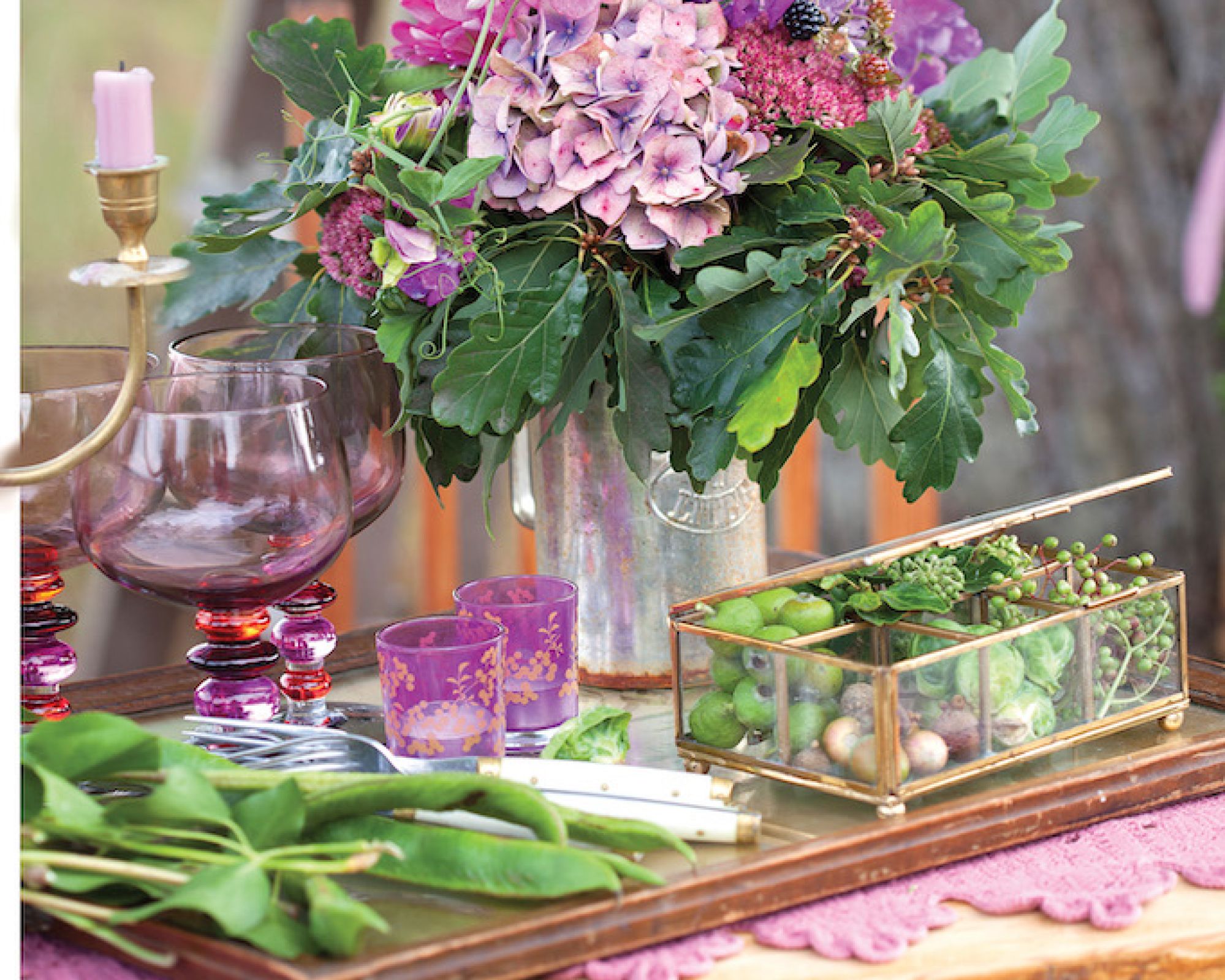 Dekoracje jesienne z żołędzi, dzikiego wina i jabłek