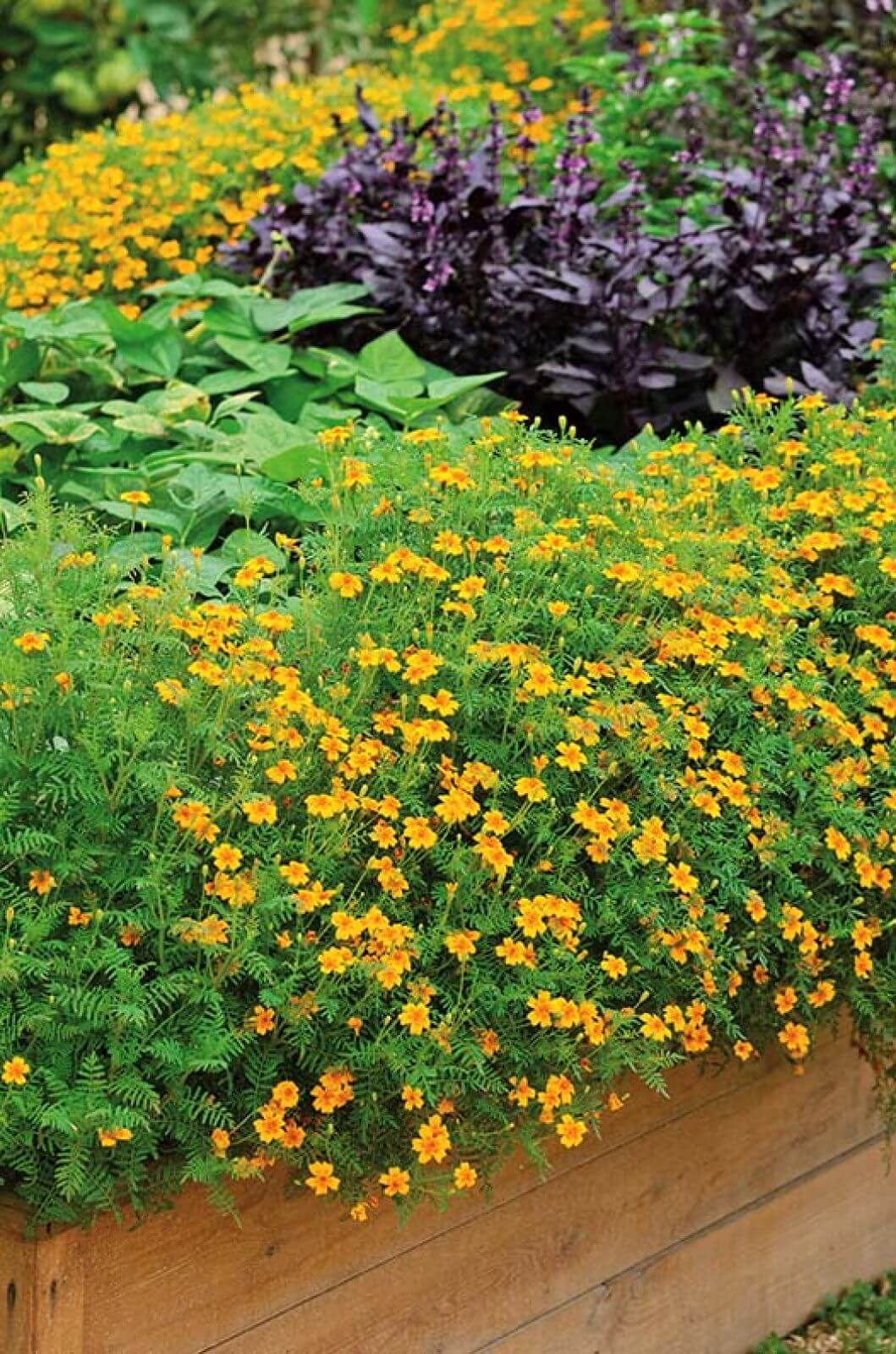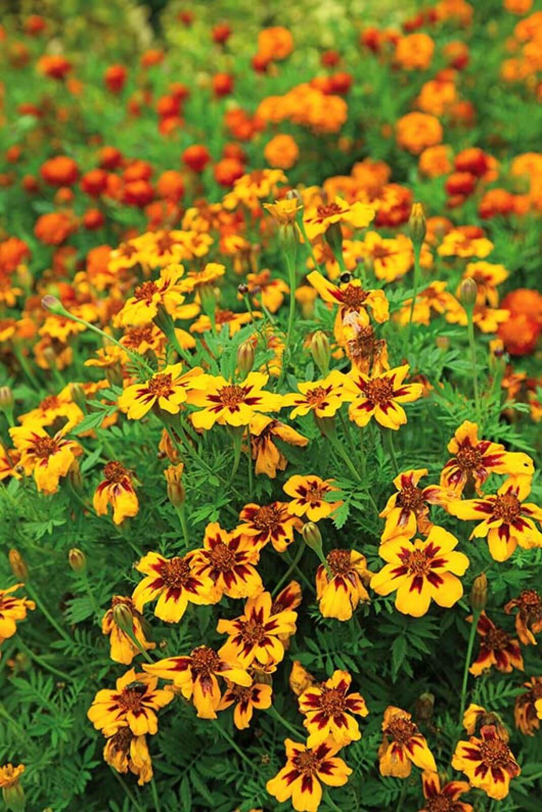Przysiągłbym również, że widuję wiele ogrodów, w których rok po roku uprawia się je w tym samym miejscu – wygląda na to, że wcale im to nie przeszkadza. Przeciwnie, może nawet pomagać. To dlatego że w wiejskich ogródkach najczęściej spotyka się różne odmiany aksamitki rozpierzchłej. Kwiaty tego gatunku są też bardzo skutecznym pomocnikiem w walce z glebowymi nicieniami, z którymi mają jakieś skomplikowane, trudne relacje. Jedni twierdzą, że szkodniki zwyczajnie aksamitek nie lubią, inni – że wydzieliny korzeni są dla nich trujące, a jeszcze inni traktują aksamitki jako pułapki na nicienie. Rację mają chyba wszyscy. Nicienie są różne i jednym kwiaty śmierdzą, a inne nęcą.