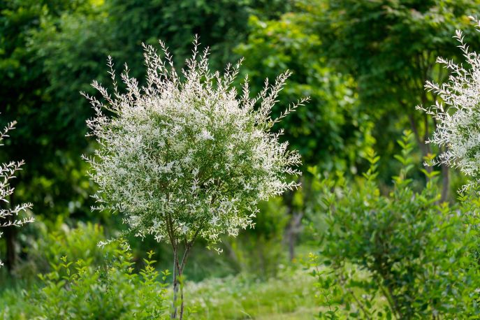 Wierzba japońska Hakuro Nishiki będzie pięknie wyglądała sama, albo w formie żywopłotu.