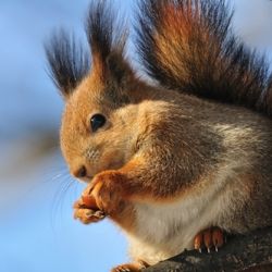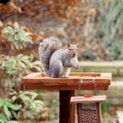Wiewiórki, choć na zimę potrafią zebrać spore zapasy i poutykać je w rozmaitych zakamarkach, wiecznie są głodne. Niestety zapominają, gdzie urządziły swoje spiżarnie i… napadają na ptasie budki. Nie dość, że wszystko wyjadają, to jeszcze płoszą skrzydlatych śpiewaków. Aby wilk był syty i owca cała, warto więc zawczasu wybudować dwie jadłodajnie i przymocować je na drążku jedna pod drugą.