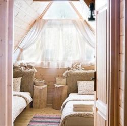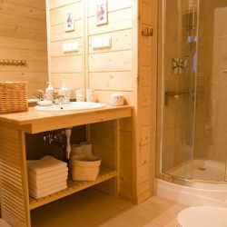 W pełni wyposażone sypialnie wraz z komfortową łazienką zajmują całe piętro, tworząc niezależną strefę nocną domku. Niektóre sypialnie mogą pomieścić dodatkowe łóżeczka dziecięce, które udostępniamy na życzenie. Można nocować przed kominkiem w salonie, gdzie znajdują się rozkładane sofy, oferujące wygodne miejsce snu dla jednej pary.