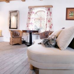 Trzy zniszczone budynki, bocianie gniazdo (w ruinie), dwa stawy (zarośnięte). – Powiedziałam mu, że oszalał! – śmieje się Agnieszka. – Porywanie się na ten remont wydawało mi się absurdem. Ale był nieugięty. Mówił: – Tu zrobimy pokoje, tu dobudujemy werandę, może da się oczyścić stawy, zrobimy sobie basen – kusił. I postawił na swoim. Po pięciu latach w chlewiku mają dwa piętrowe apartamenty z kominkiem, w stodole kameralną restaurację i wielką kuchnię, w domu – pokoje, jadalnię i werandę. Na dachu znów zamieszkał bocian z rodziną.