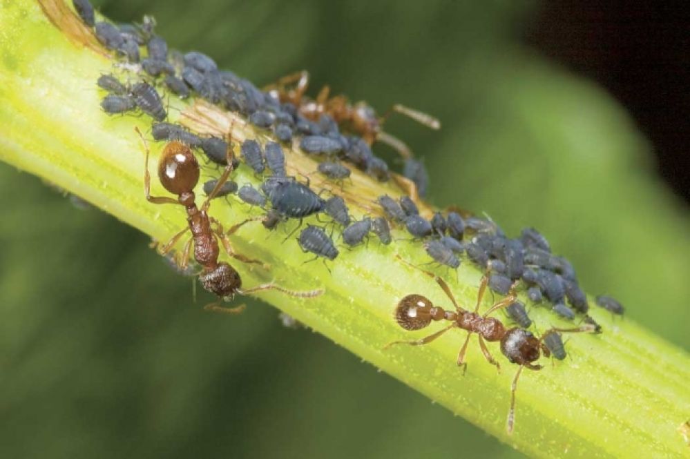 Niektóre mrówki hodują – tak jak my krowy – mszyce i spijają ich słodki sok. Pomagają pasożytom przetrwać zimę, chroniąc ich jaja w swoich podziemnych domach, a wiosną wypuszczają na rośliny ku utrapieniu ogrodników.
